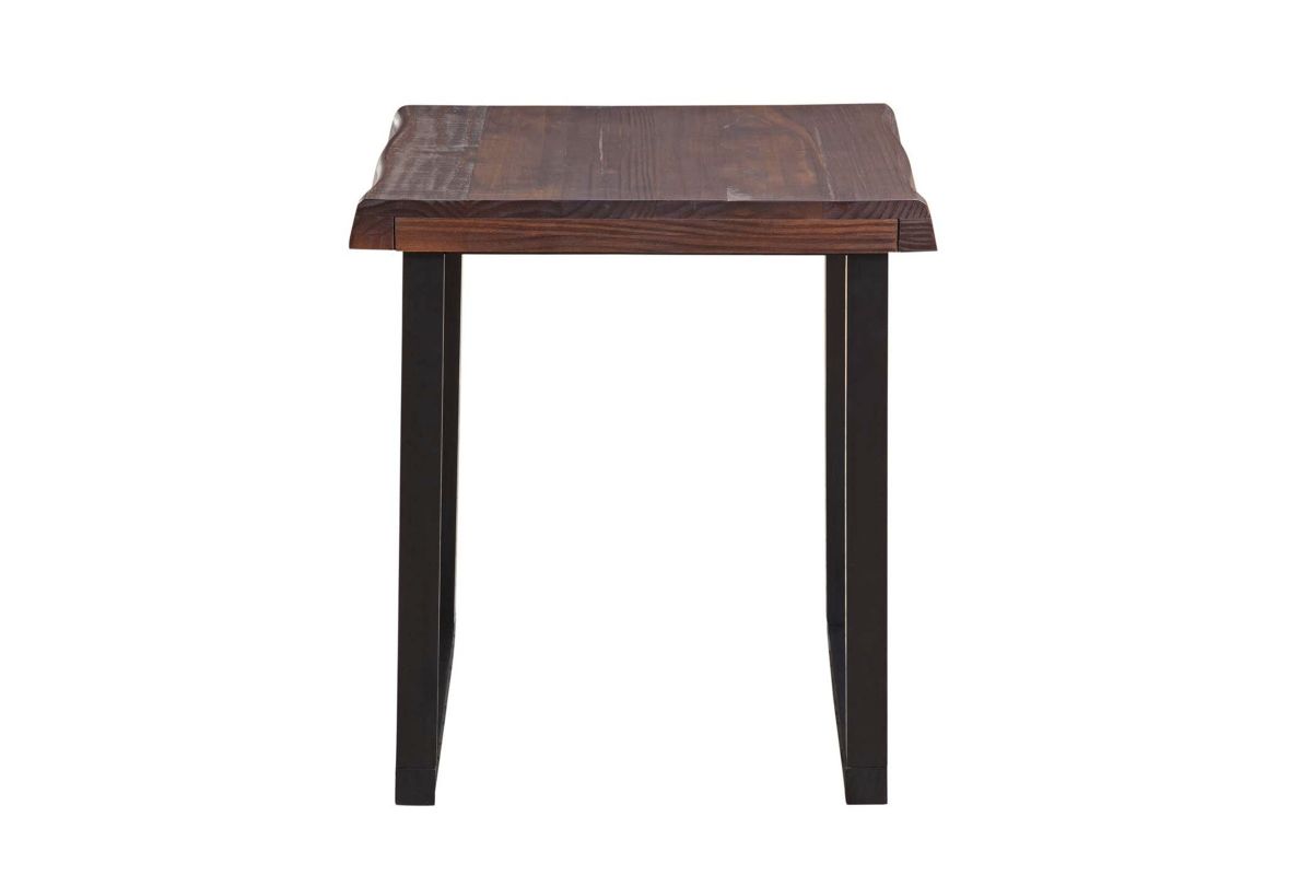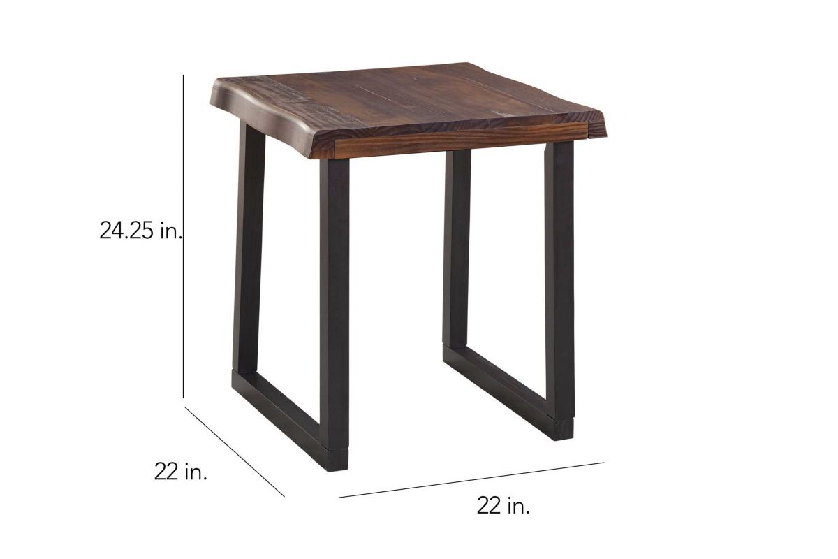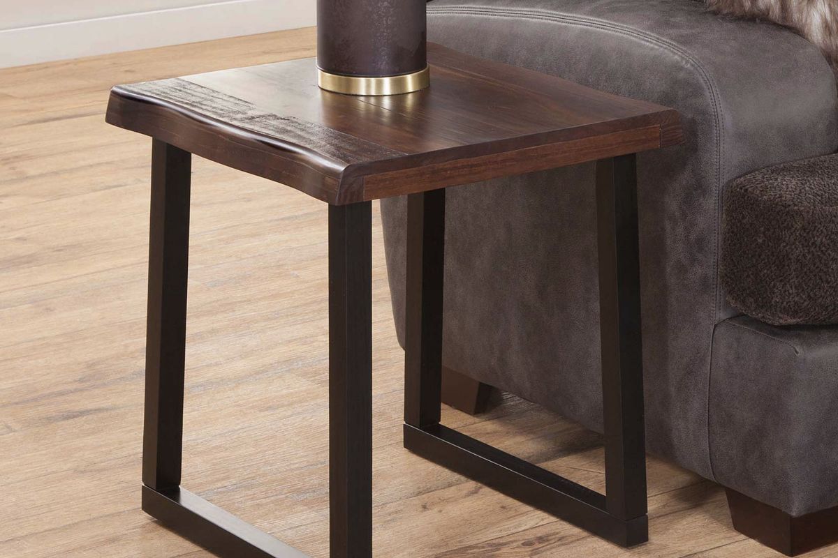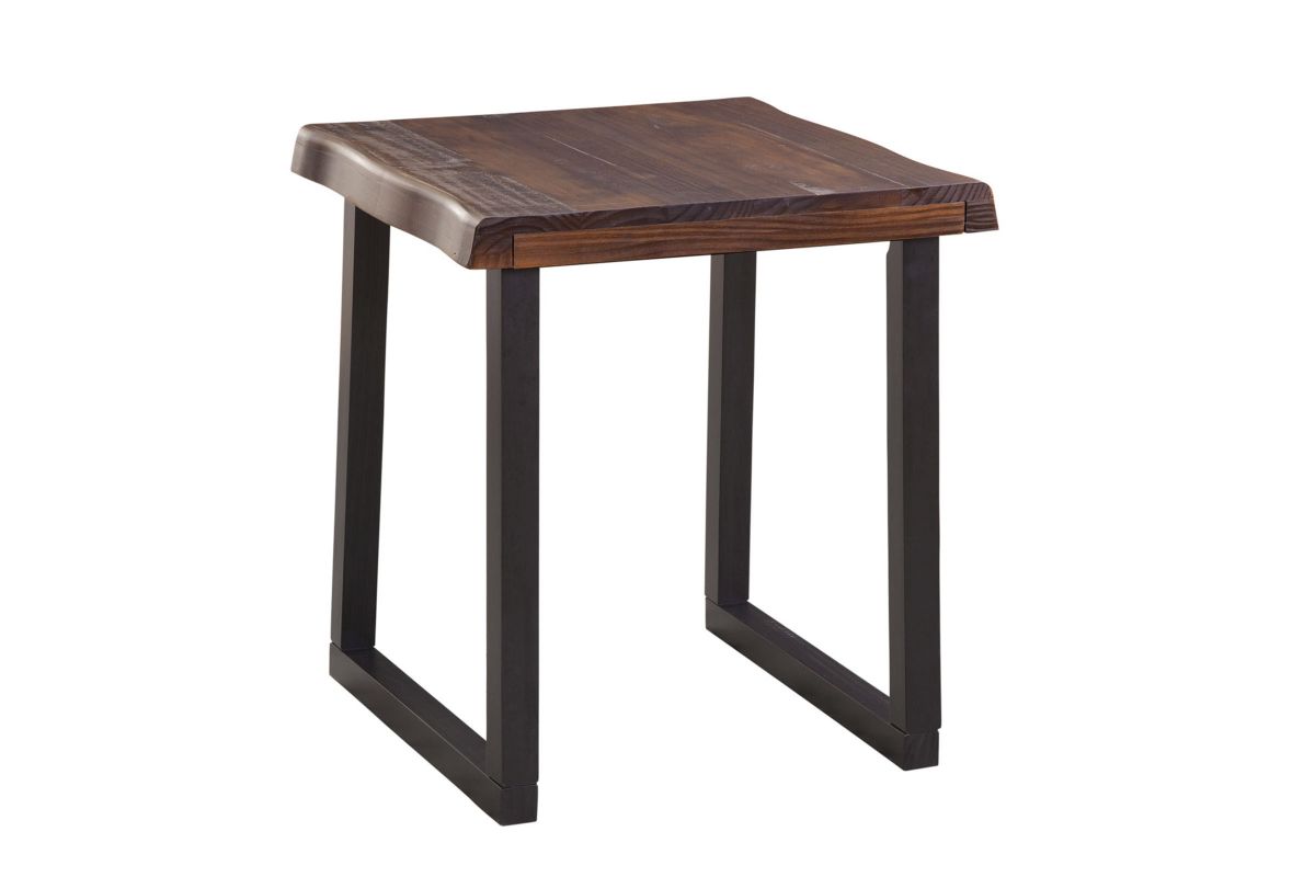 The Jennings End Table presents a rustic modern style in a two-tone finish that warms up any room. The deep cherry colored finish contrasts beautifully with the ebony finished base for a look that is truly transitional contemporary. A rustic live edge gives the table visual interest and shows off the beauty of the solid pine tops.