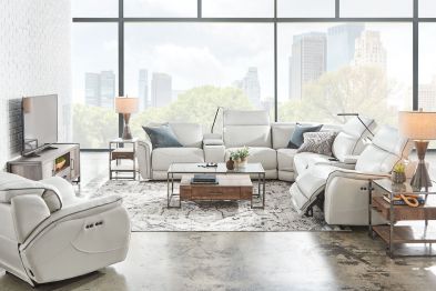 Offering an ultra-modern silhouette, generous proportions and the best in comfort and style, the Corbin Motion Collection was designed to accommodate every lifestyle. Distinctively molded foam arms and contrast piping with accent stitching add style while the articulating synchronized head and footrest's provide comfort. Extremely functional, the Corbin Motion Collection features a media console equipped with a wireless charging station, USB ports, a reading light, storage and hidden cupholders. A truly welcoming seating choice, the Corbin Motion Collection is fit for the whole family.