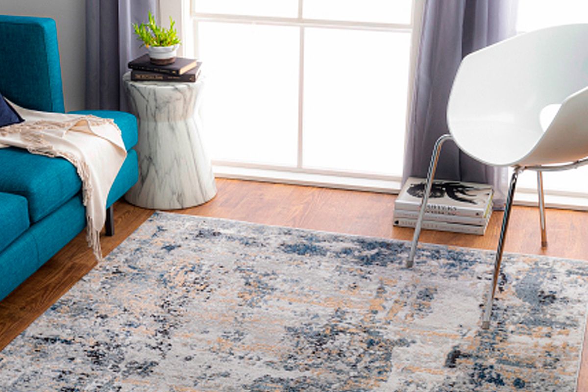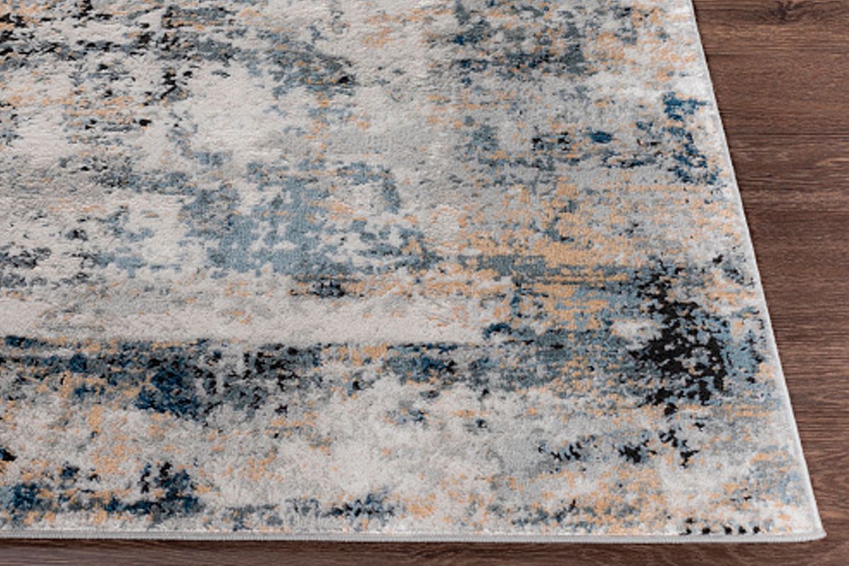 Let the Jolie Area Rug be the center of your space. With its beautiful hues of grey, beige, and blue on display this area rug pairs seamlessly with many styles of decor. The abstract motif's are perfect for modernizing your space while the low .39" pile height is great for spots with heavy foot traffic, like your living or dining spaces.
