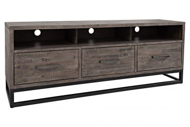 The East Hampton 70" TV Console is an attractive balance of natural and industrial materials. Distressed wood tops with solid metal bases create a look that is easily at home in living spaces. Offering plenty of open and closed storage solutions to make your space comfortable and attractive. Tasteful distressing should be expected and enjoyed.