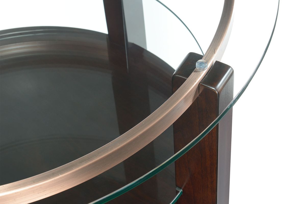 The Elsa Coffee Table teases a smooth glass tabletop, a circular wooden base and showstopping metal accents. Perfect for showcasing coffee table books or tabling refreshments, the Elsa Coffee Table brings an intriguing, sophisticated edge to your living space. Adding an open, airy feel to your home this unique piece will be the center of your space.
