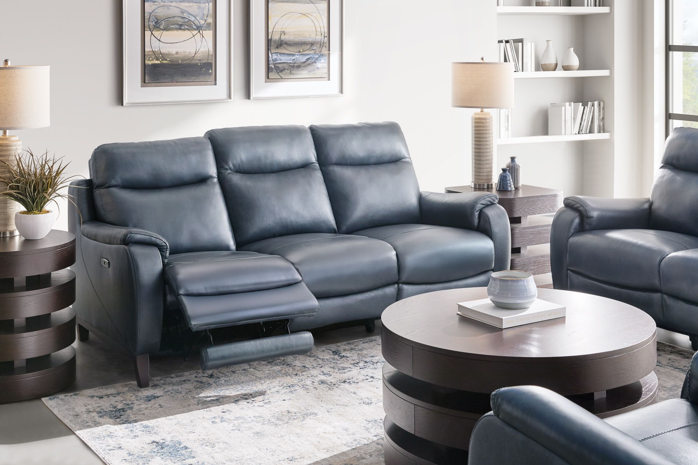 Marco Blue Dual Power Leather Reclining Loveseat