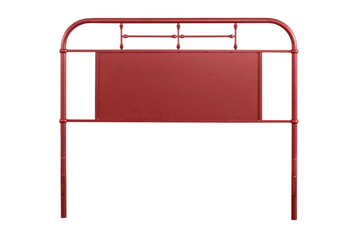 The Vintage Queen Size Red Metal Headboard by Liberty Furniture is certain to be a hit. It has the classic styling of metal beds of the past that become a perfect centerpiece for any bedroom and can be incorporated into many different styles. Rounded corners on the headboard accentuate the curves in the turned spindles. A bold statement is made by the matching center panels.