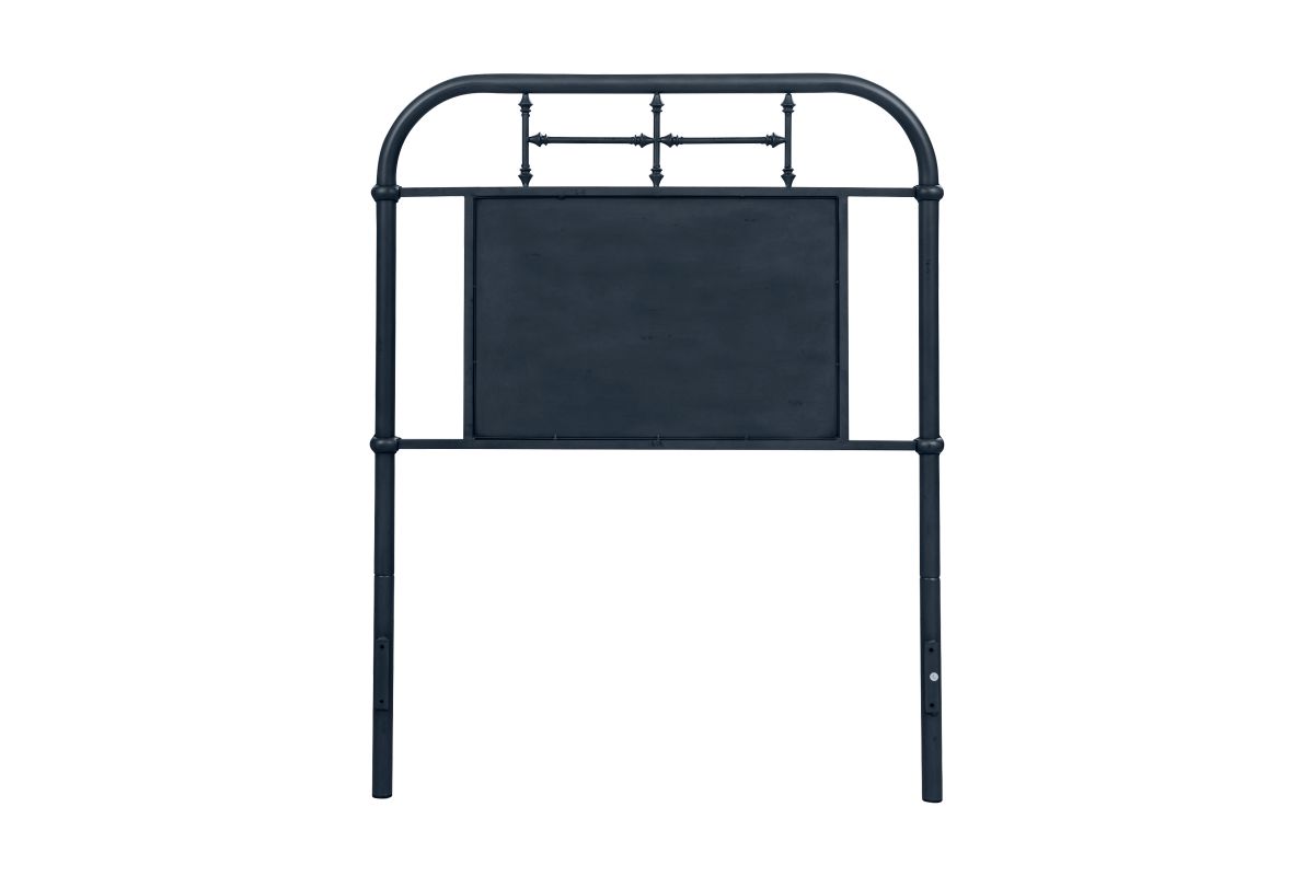 The Vintage Twin Size Navy Metal Headboard by Liberty Furniture is certain to be a hit. It has the classic styling of metal beds of the past that become a perfect centerpiece for any bedroom and can be incorporated into many different styles. Rounded corners on the headboard accentuate the curves in the turned spindles. A bold statement is made by the matching center panels.