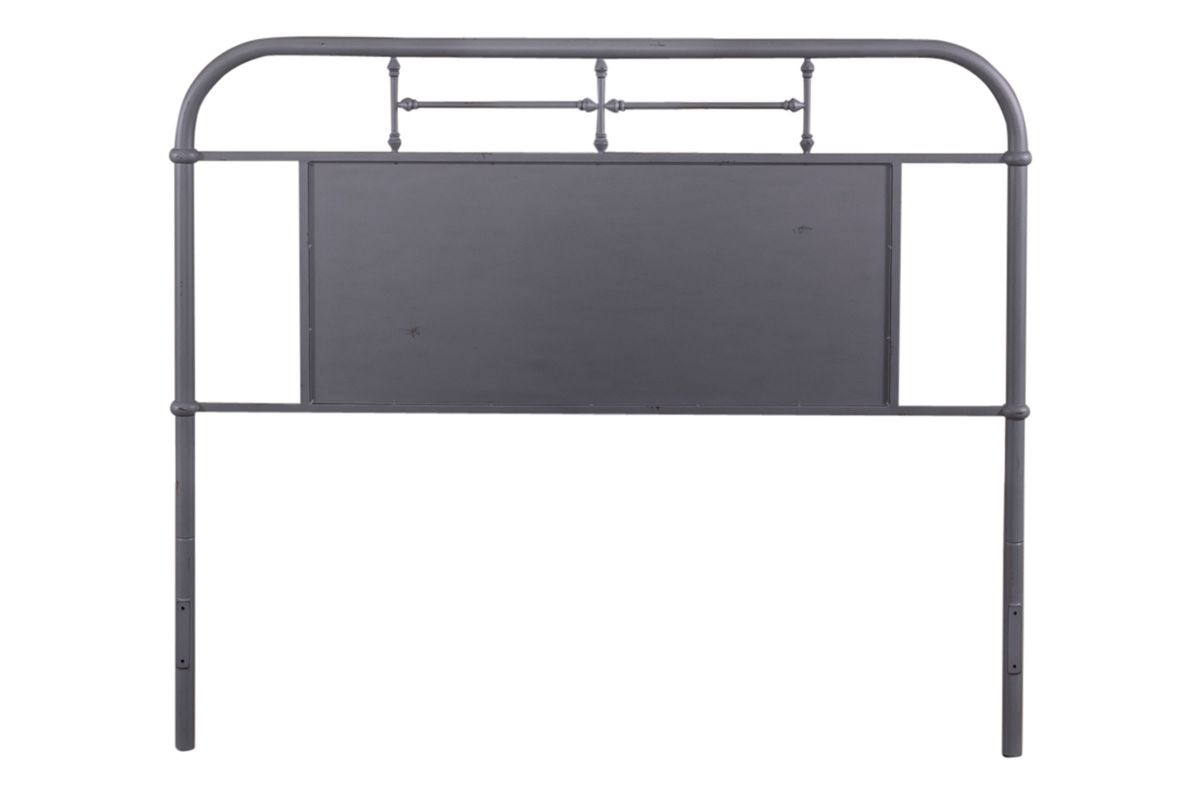 The Vintage Twin Size Grey Metal Headboard by Liberty Furniture is certain to be a hit. It has the classic styling of metal beds of the past that become a perfect centerpiece for any bedroom and can be incorporated into many different styles. Rounded corners on the headboard accentuate the curves in the turned spindles. A bold statement is made by the matching center panels.