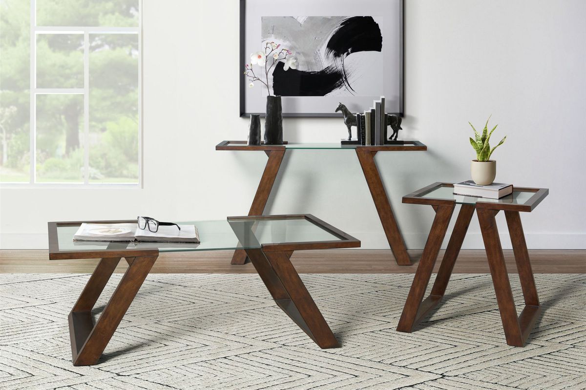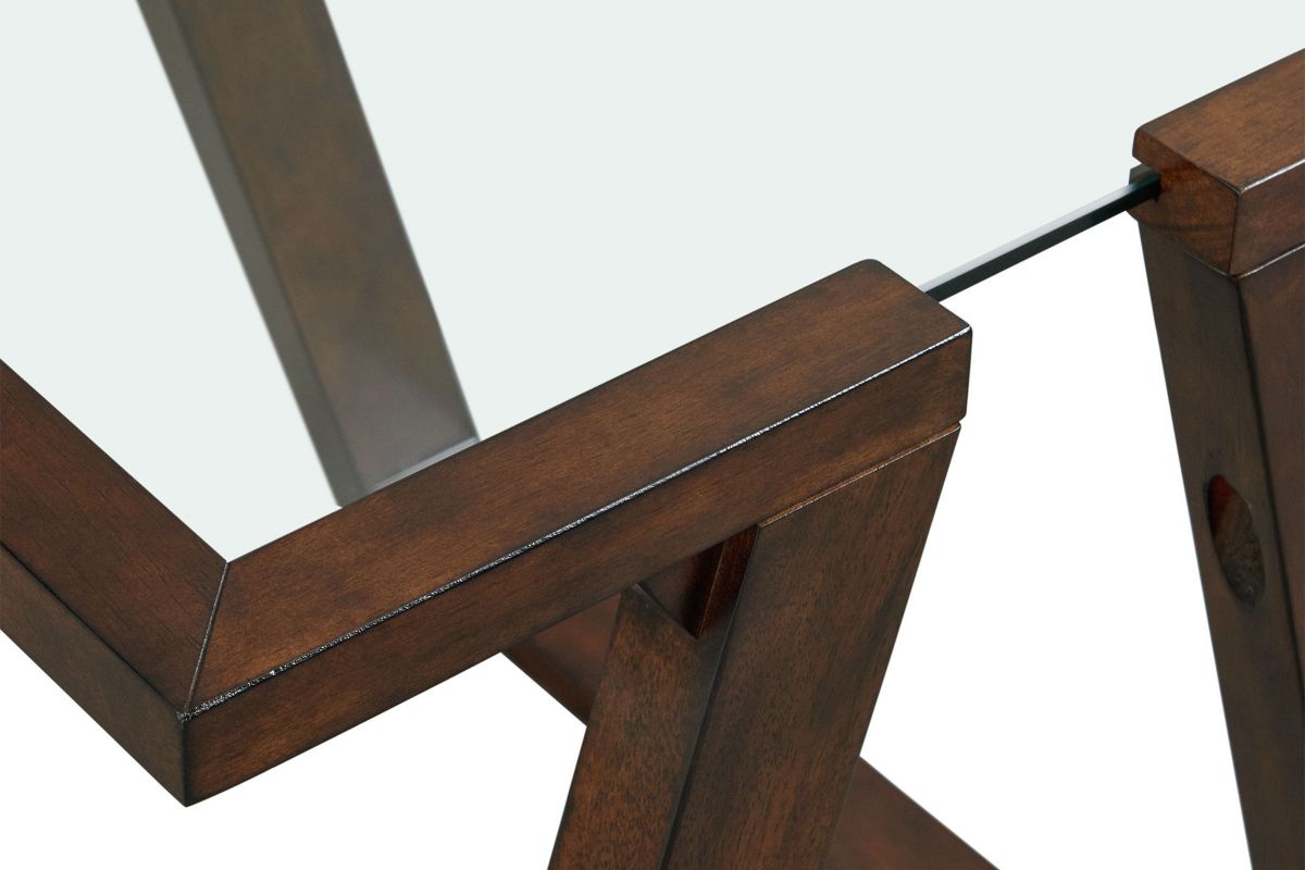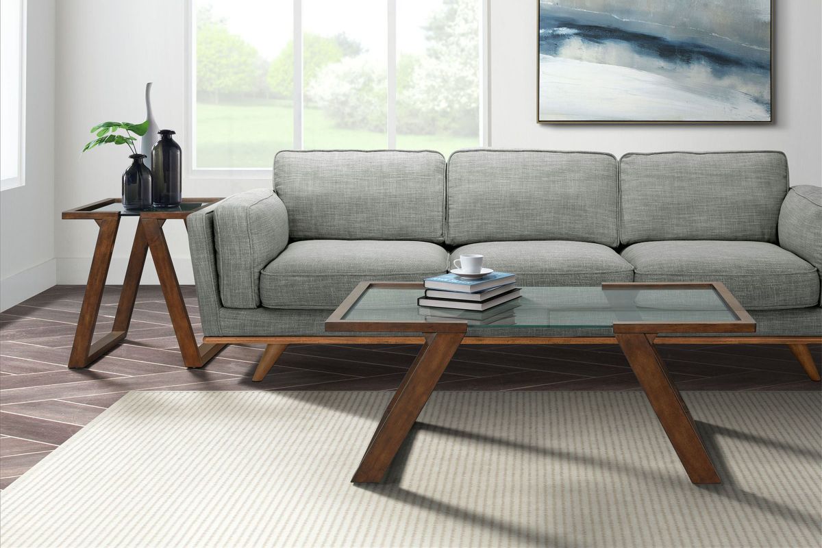This mid-century inspired wooden base and glass-topped table avoids clutter and adds an open, organized feel to your space. The earthy solid wooded base design will anchor the design of your space. Easily pair this piece with other textures and materials such as marble or metal.