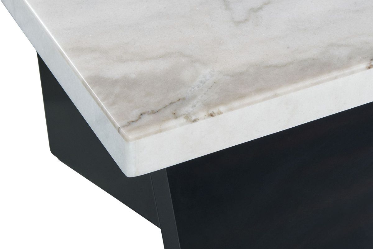 The Beckley End Table offers a marble top. The Beckley's modern day look fits any space. Pairs nicely with the Beckley Coffee table.