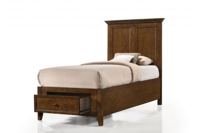 The San Mateo Brown Storage Bed blends traditional and contemporary styles to capture a beautiful transitional look. This bed is a Rustic Brown finish that is complemented by aged bronze hardware for a warm feel. This classic design will never go out of style, while its simple lines give the San Mateo bed a contemporary feel that matches any decor scheme or color palette.that will last in function and style.