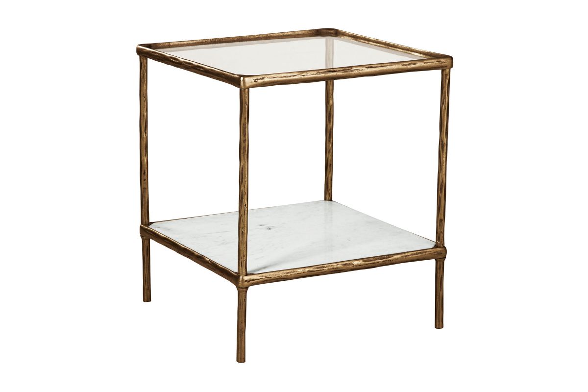 Classic in design with a dash of textural appeal, this accent table provides both flair and function. The glass tabletop offers the perfect perch for a lamp, while the white marble lower shelf is ideal for resting trendy coffee table books and other decorative pieces. An antiqued brass-tone finish on the frame has a rustically luxe look that remains versatile, suiting spaces from casual to contemporary.