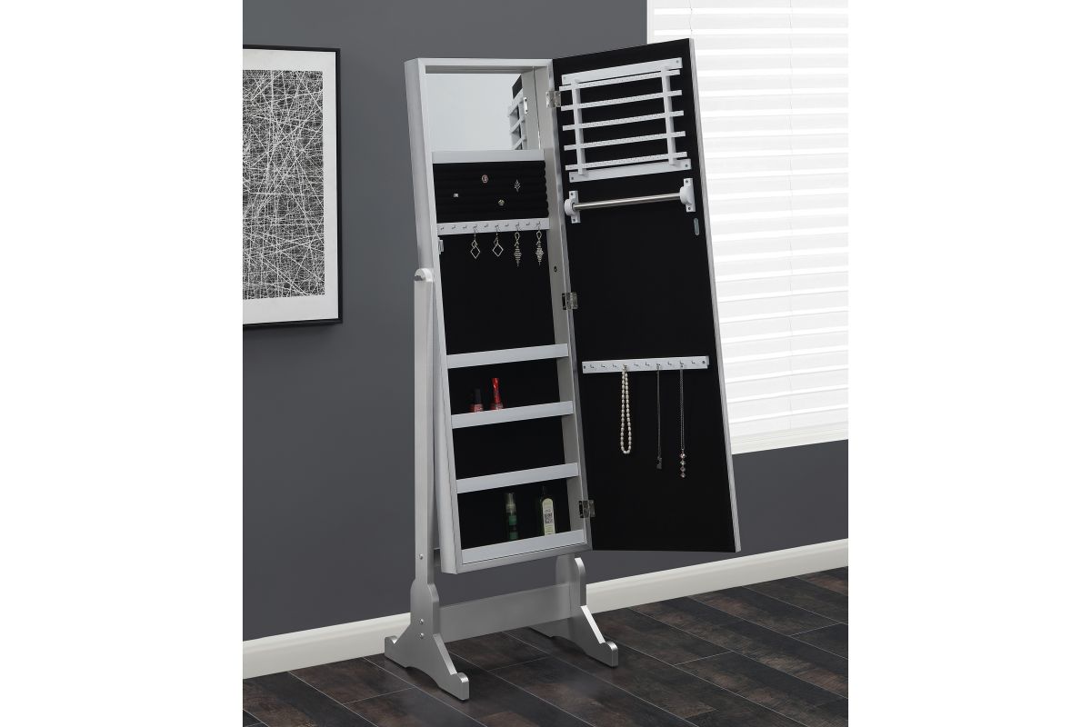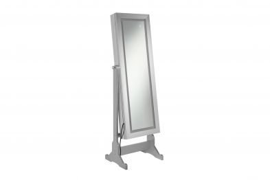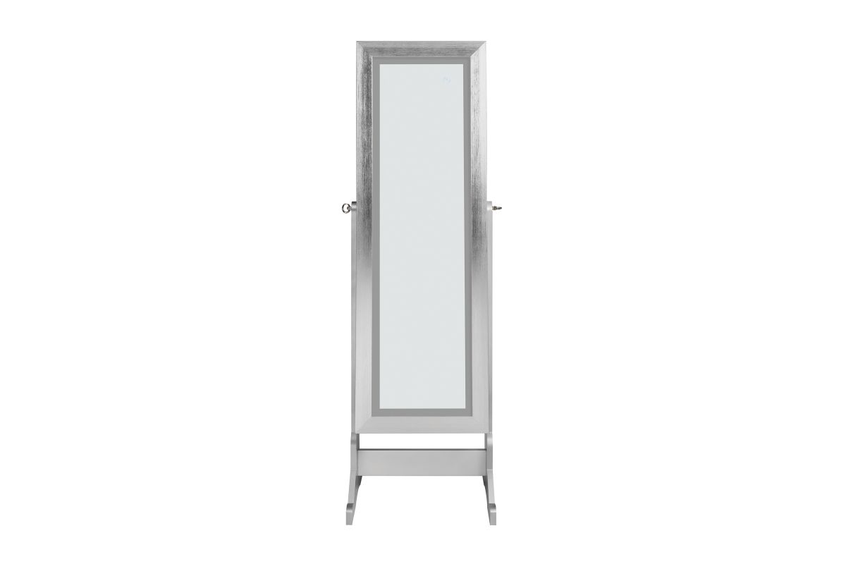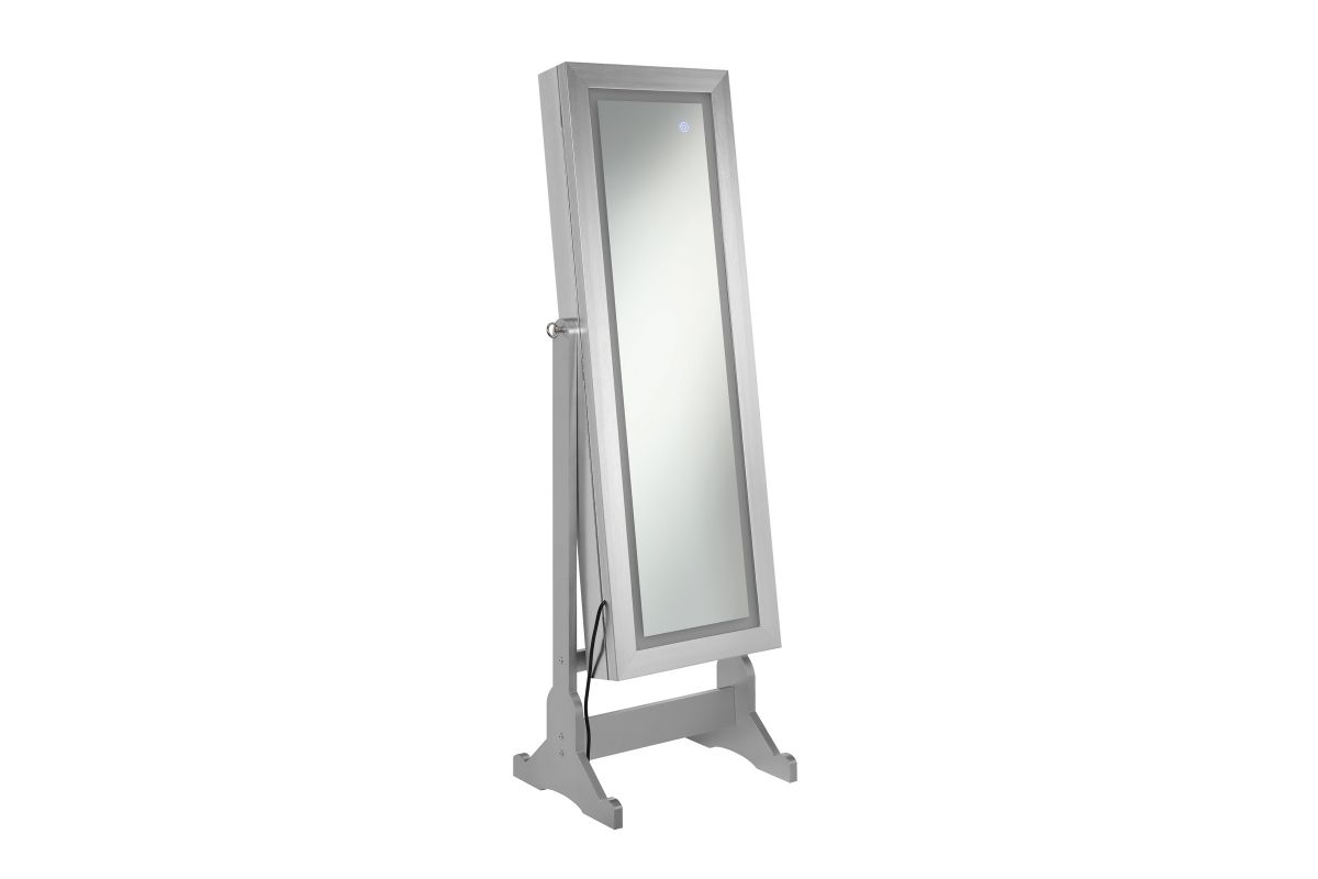Put the finishing touch on a glamourous bed or dressing room with this stunning floor-length jewelry cheval mirror. Sleek and smooth, the frame features a metallic silver finish. Supportive and intriguing, the delicately curved legs give this mirror its chic personality. Brighten up a space with the light up mirror while keeping your favorite jewelry safe. Angle the mirror upwards or downwards in any bold or neutral decor scheme.