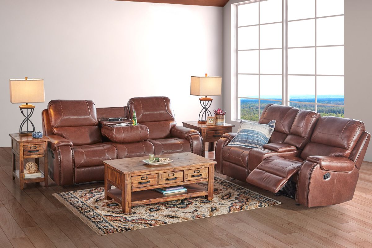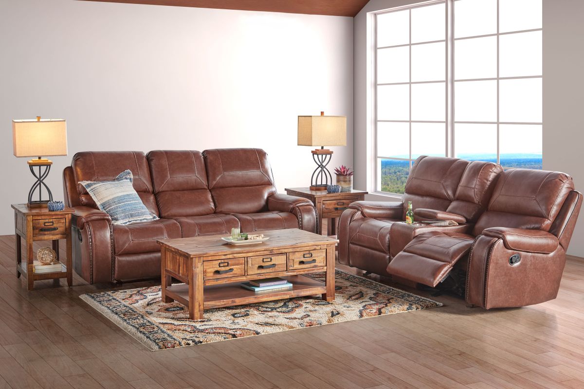Anchor your living space with the simply designed Atwood Manual Reclining Collection. Designed with comfort in mind, this motion collection's clean lined silhouette will keep your space feeling contemporary. Tailored detailing on the cushions and a stylish nail head trim around the arms add a high-quality look and feel. The saddle arms and padded footrests provide superior comfort. Let the Atwood Manual Reclining Collection be your favorite space in your home.