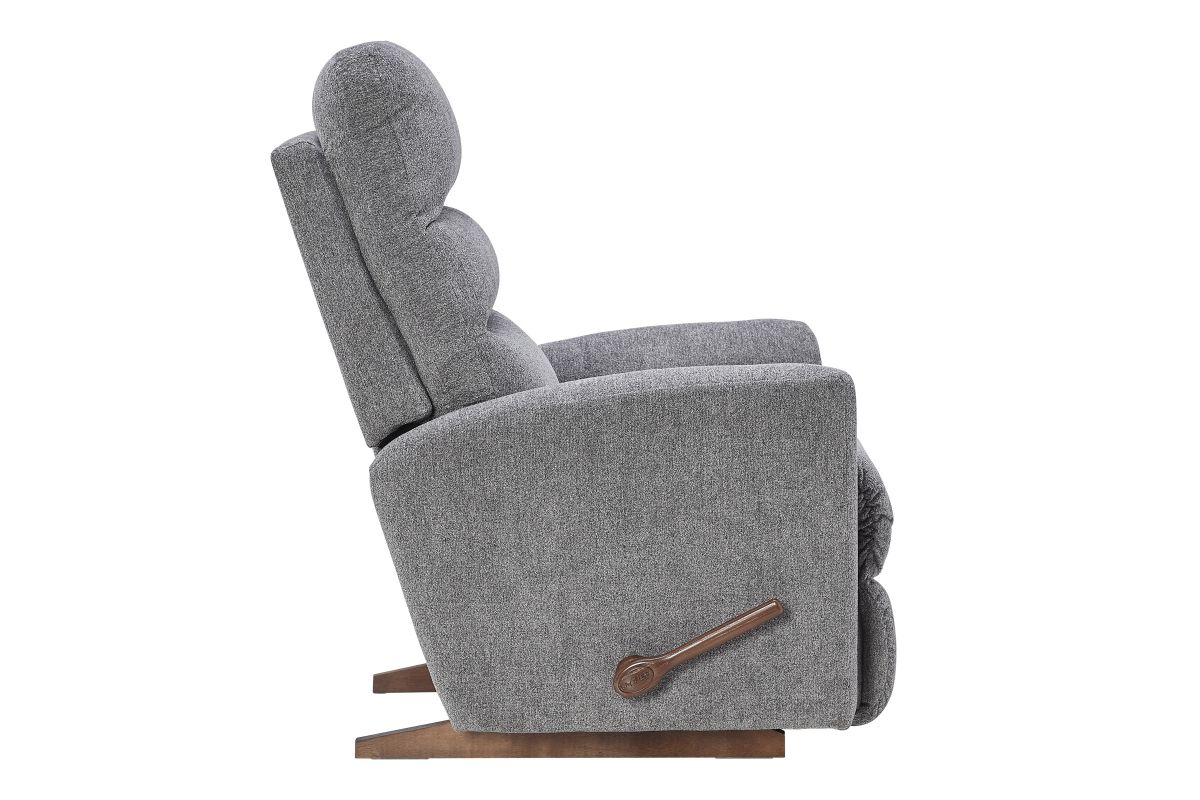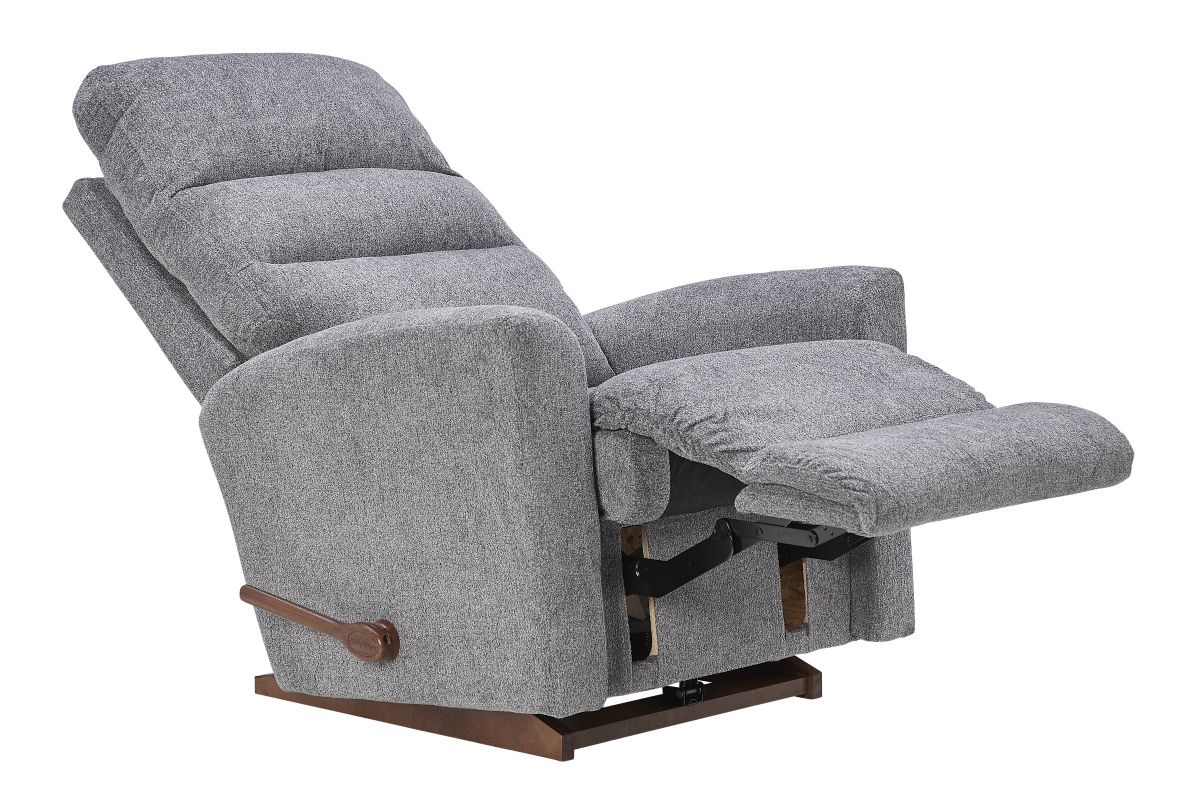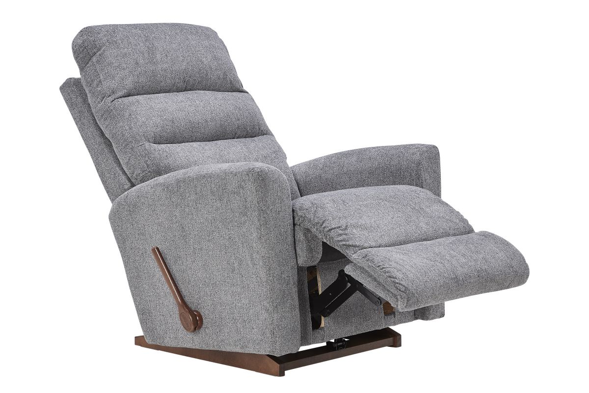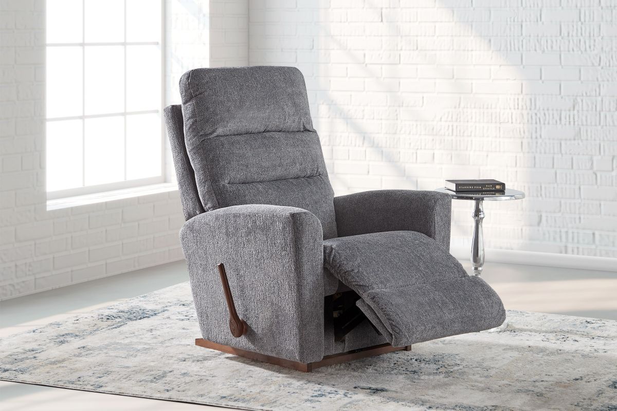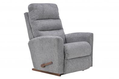 The Liam Rocking Recliner creates a perfect harmony between comfort and style. Its tall back, inviting chaise seat and soothing rocking motion hum with relaxation. Sleek flared arms and a clean silhouette lend a bright note of refinement to any room.