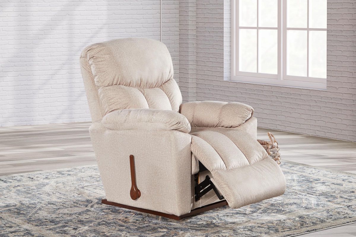 The Morrison Rocking Recliner is a family favorite that’s designed for comfort and durability. It features a tufted back and chaise seat, plus amply padded arms to cradle you in comfort. Simply use the convenient handle on the outside arm to raise the legrest for reading, relaxing or watching TV. When you’re not reclining, it’s a relaxing rocker with a smooth, graceful motion.