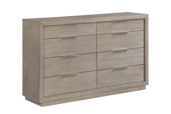 Add the ideal new storage option to your bedroom with this transitional 8-drawer dresser and mirror set. Slender pull bar drawer handles and a contemporary grey finish accent this piece's simple silhouette and work to craft the epitome of modern sophistication and minimalism. Featuring top felt-lined drawers, this dresser can provide the perfect safe space for delicates and jewelry you want to keep snag and scratch-free. Whether looking to organize your space and avoid the dreaded pile of clothes in the corner, or simply add a new piece to your space