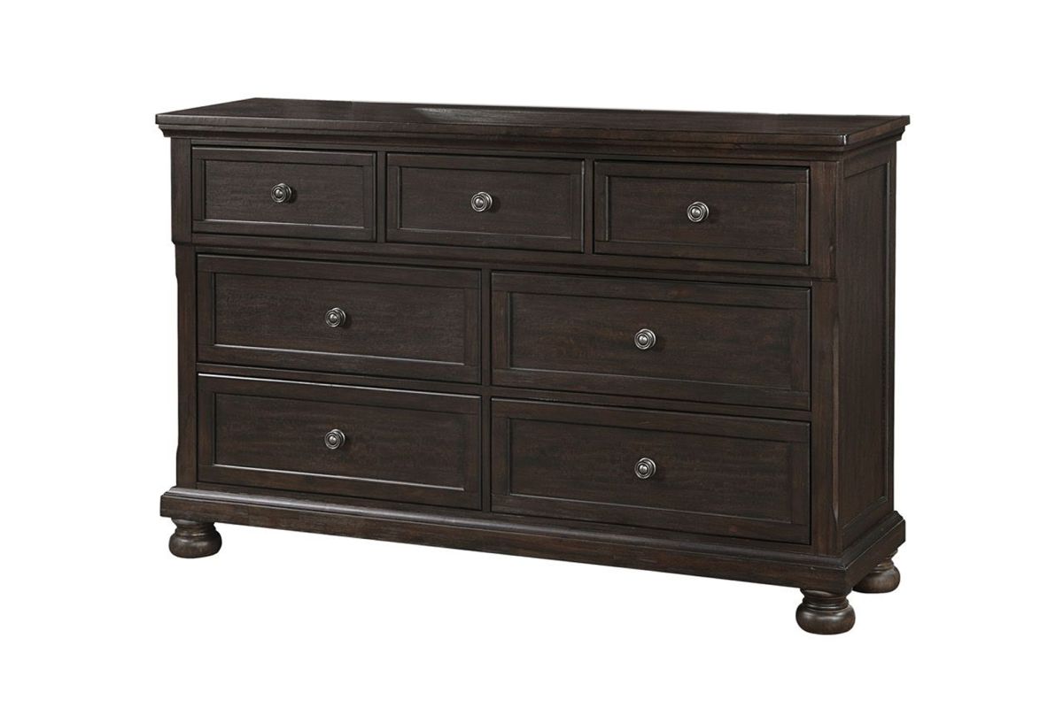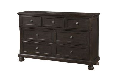 The Berkley Dresser has inlaid panels and antiqe hardware with 7 roomy drawers that will keep your clothes origanized.