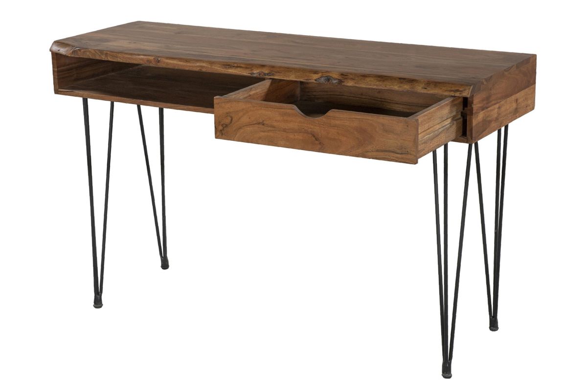 Accent your space with the mid-century modern stylings of the Tuscany Console Table. Constructed of a geometric silhouette that features a straight lineed silhouette and an open shelving unit and drawer. This console table will give your space a modern flair. Use the open shelve to store magazines or family pictures.