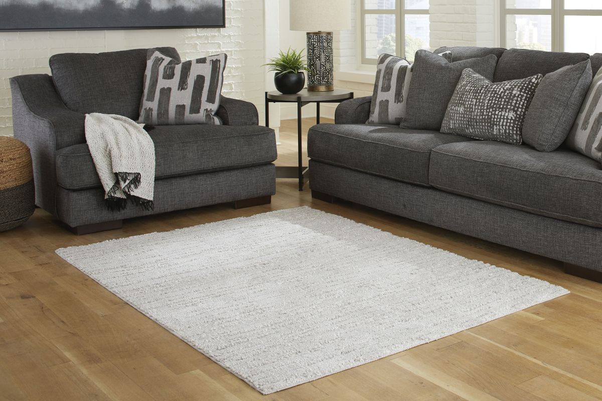 This rug leaves so much to the imagination. Its abstract design in shades of gray dresses up a room with soft, visual texture and a highly contemporary point of view.