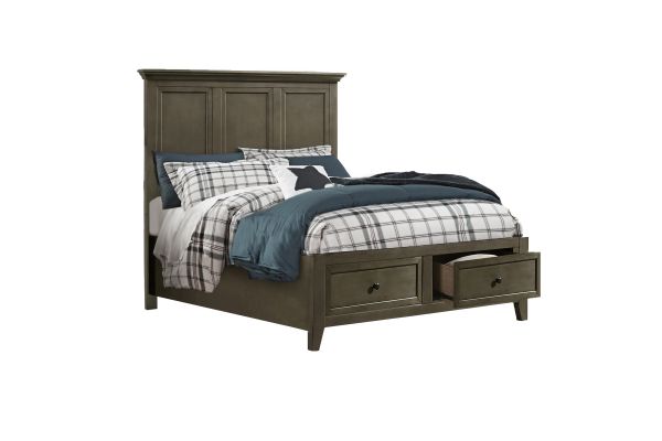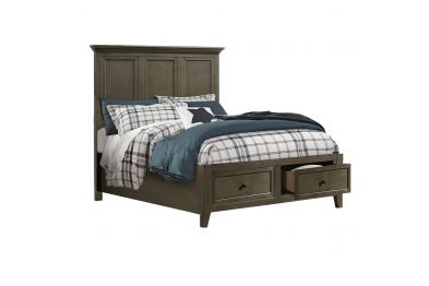 The San Mateo Grey Storage Bed blends traditional and contemporary styles to capture a beautiful transitional look. This bed is a Grey finish that is complemented by aged bronze hardware for a warm feel. This classic design will never go out of style, while its simple lines give the San Mateo bed a contemporary feel that matches any decor scheme or color palette.