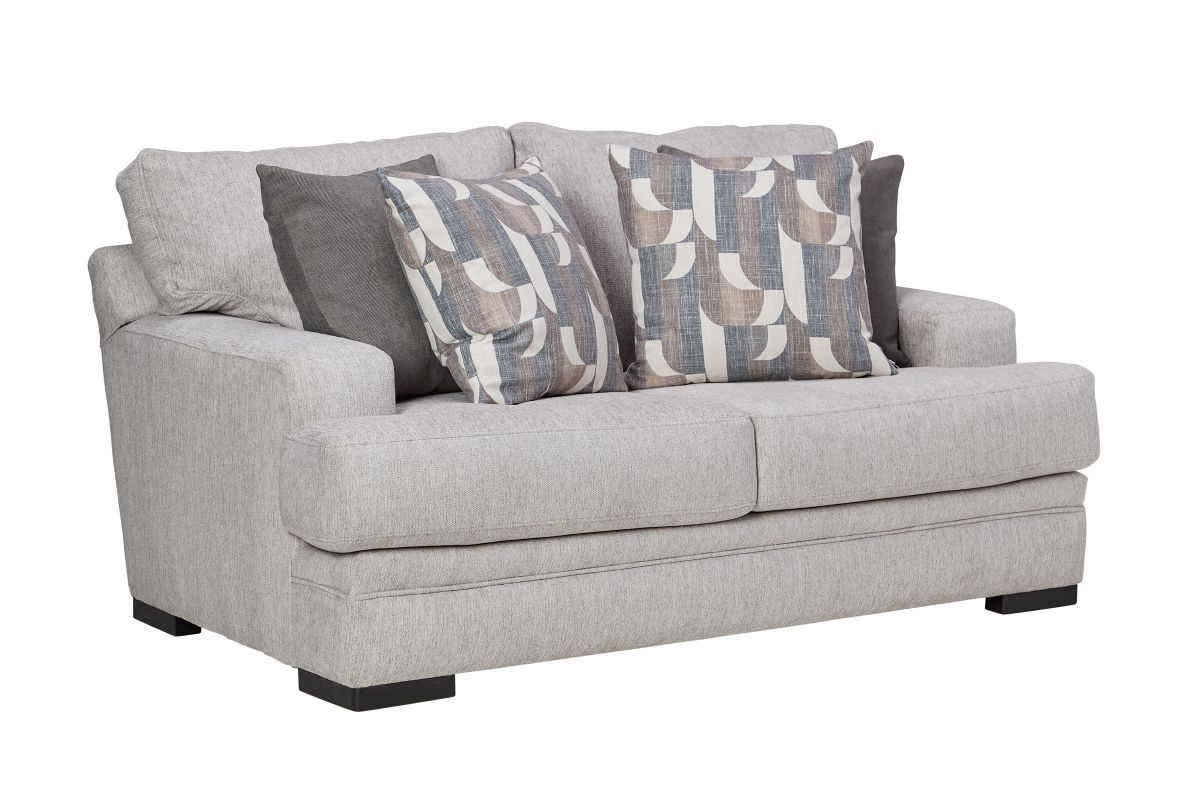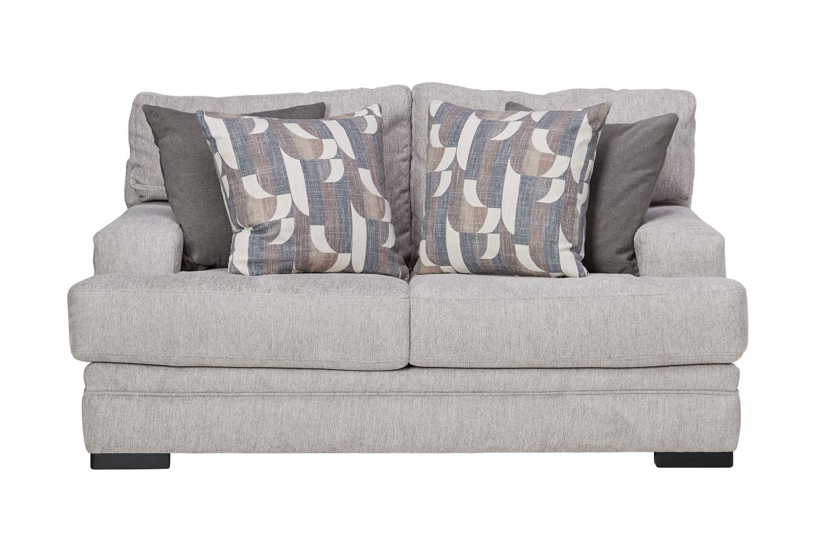 The Huron Loveseat delivers modern design in a perfectly proportioned package. With its wide track arms, deep seating, and low-profile wood-tone block feet, this piece makes a strong yet relaxed statement. Upholstered in a soft, neutral fabric, the Huron effortlessly complements a variety of interiors—from urban lofts to cozy living rooms. Coordinating throw pillows add a touch of texture and geometric flair, tying the look together with ease. Whether styled as a standalone piece or paired with the full collection, the Huron Loveseat brings comfort and sophistication in equal measure.