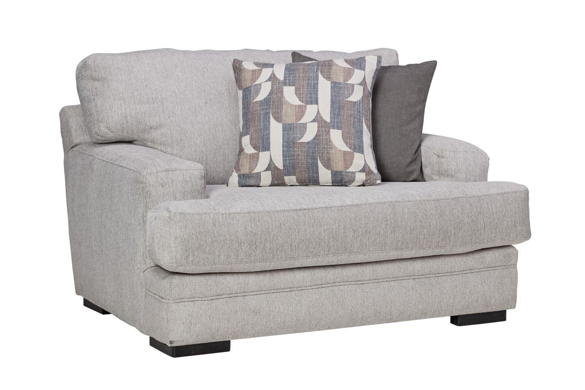 The Huron Chair brings modern flair to any room with its clean lines, generous proportions, and sculptural track arms. Designed for those who appreciate relaxed sophistication, it features deep, supportive seating and warm wood-tone block feet that add a grounded touch. Upholstered in a soft, versatile fabric, the chair is finished with a stylish accent pillow showcasing a geometric print—offering just the right pop of pattern. Whether used as a cozy reading nook or paired with other Huron pieces, this chair makes a confident, contemporary statement.