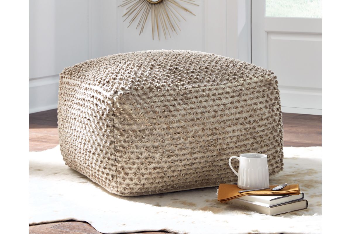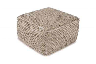 Natural beauty is always in vogue and this pouf proves it. Handwoven and knotted upholstery in solid ivory and natural color reflects a simple yet fresh design.
