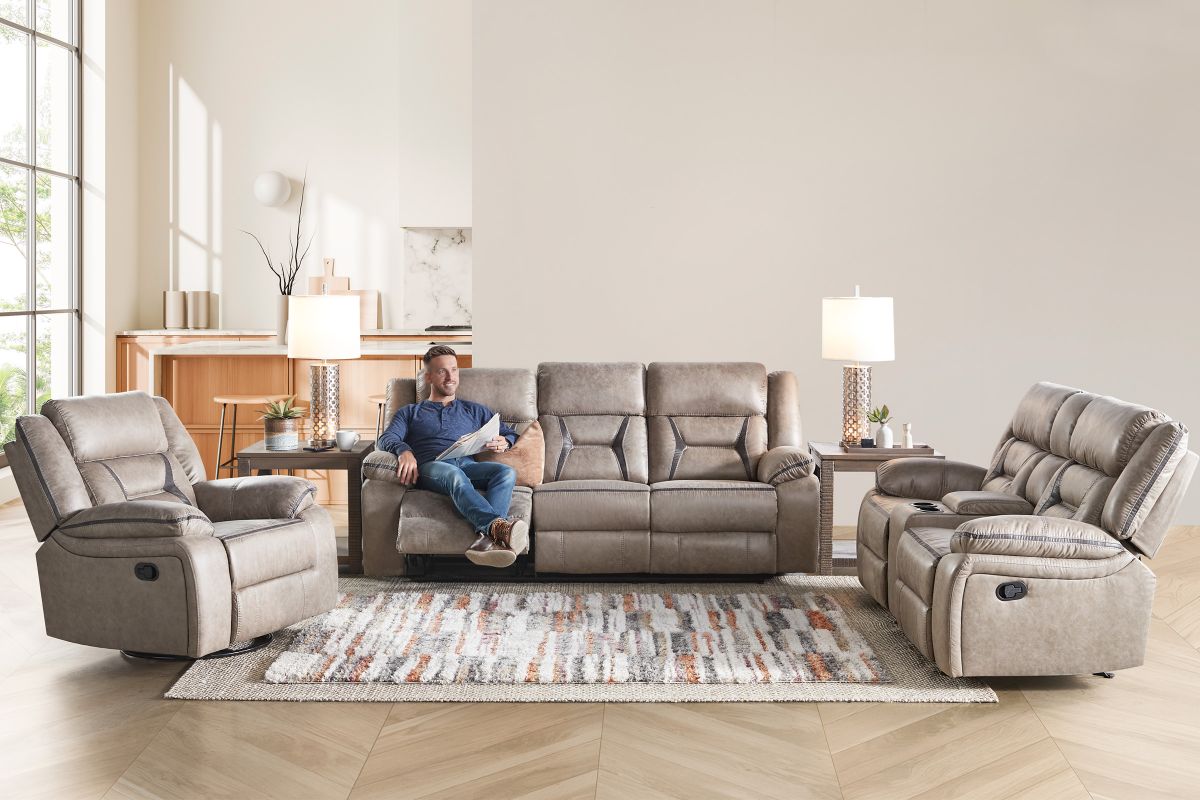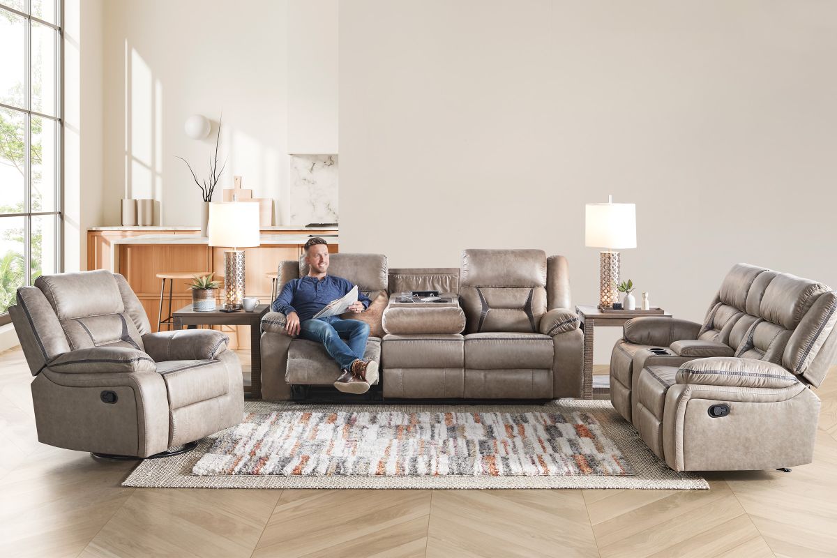 Sorry, the Duke Taupe Reclining Sofa is no longer available. We've left this page up for reference only. Check out the great alternatives on this page or call 248-481-2208 or Chat with a Gardner White Sales Specialist about similar products.