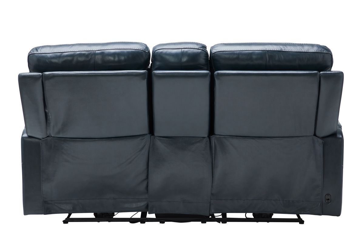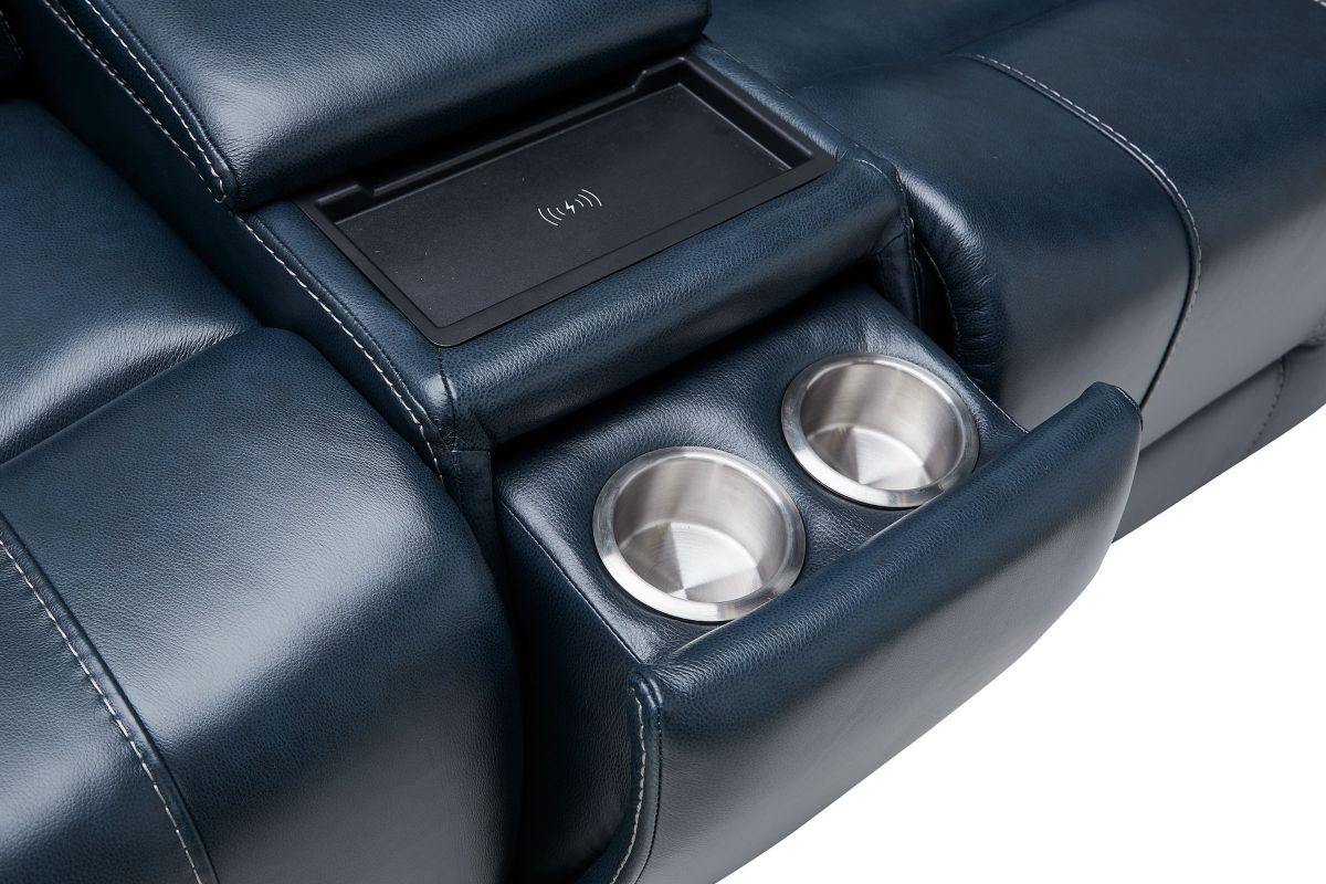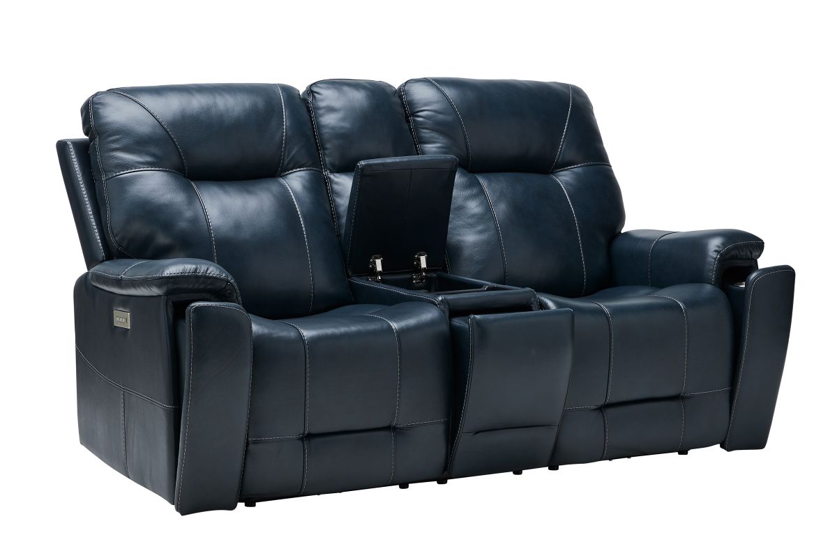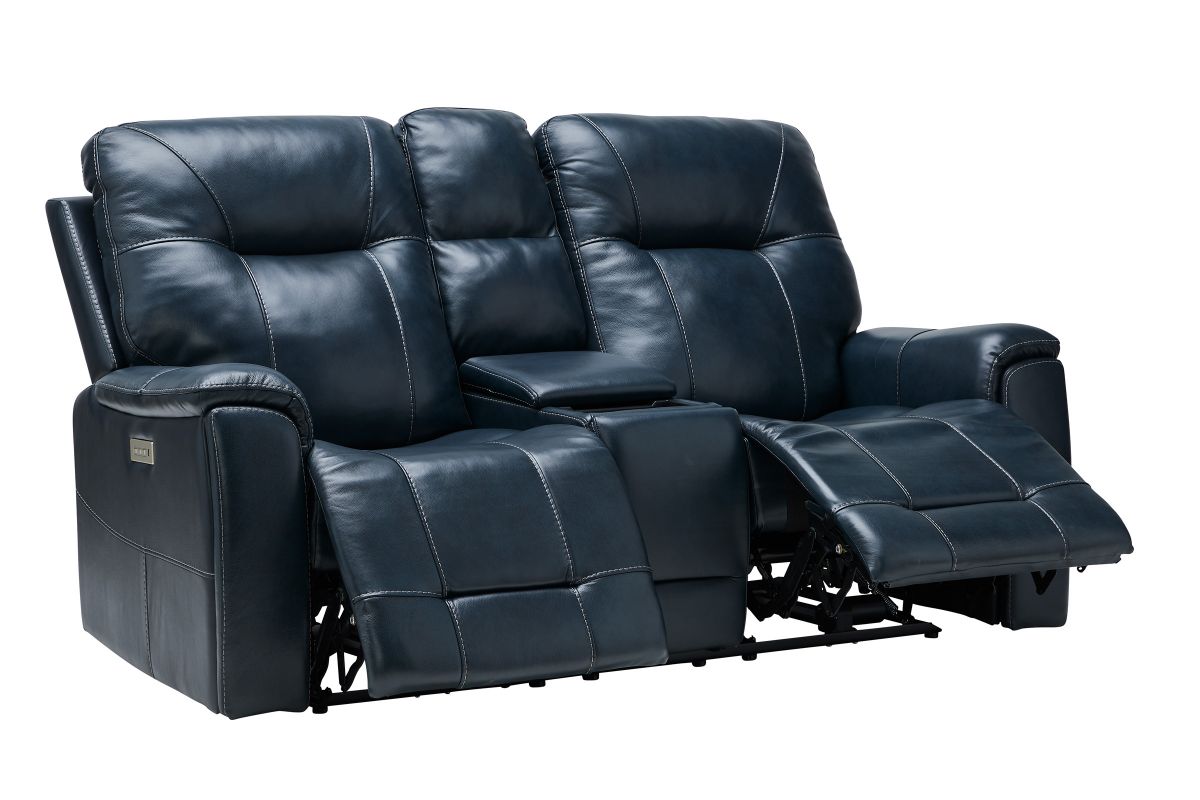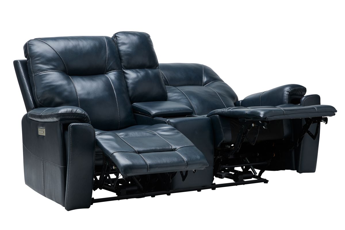 Roman Ocean Triple Power Reclining Console Leather Loveseat