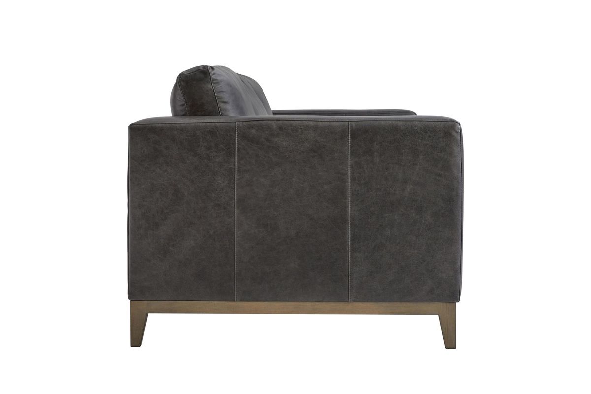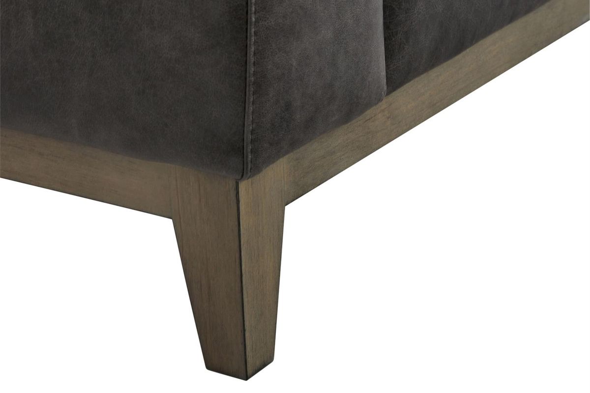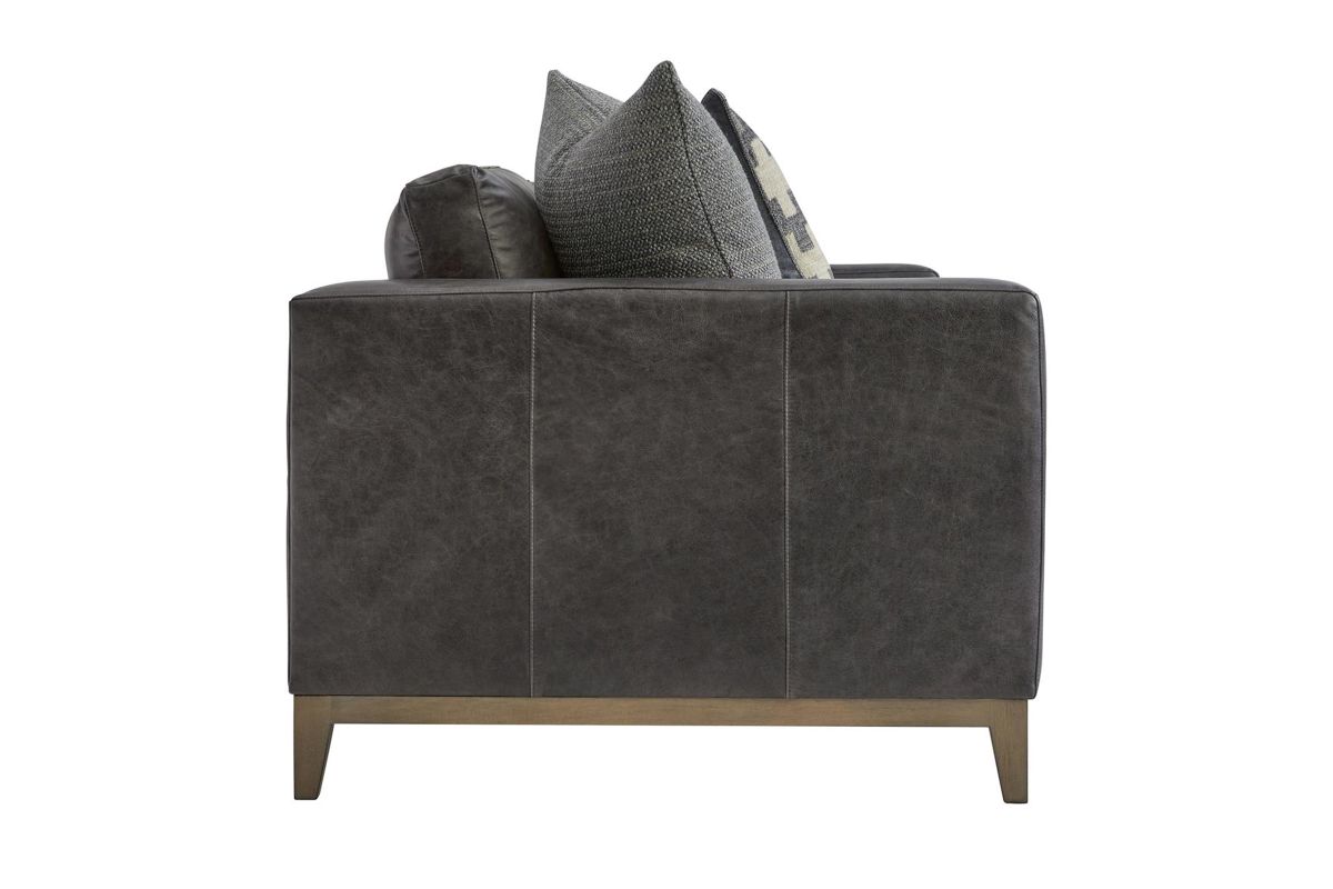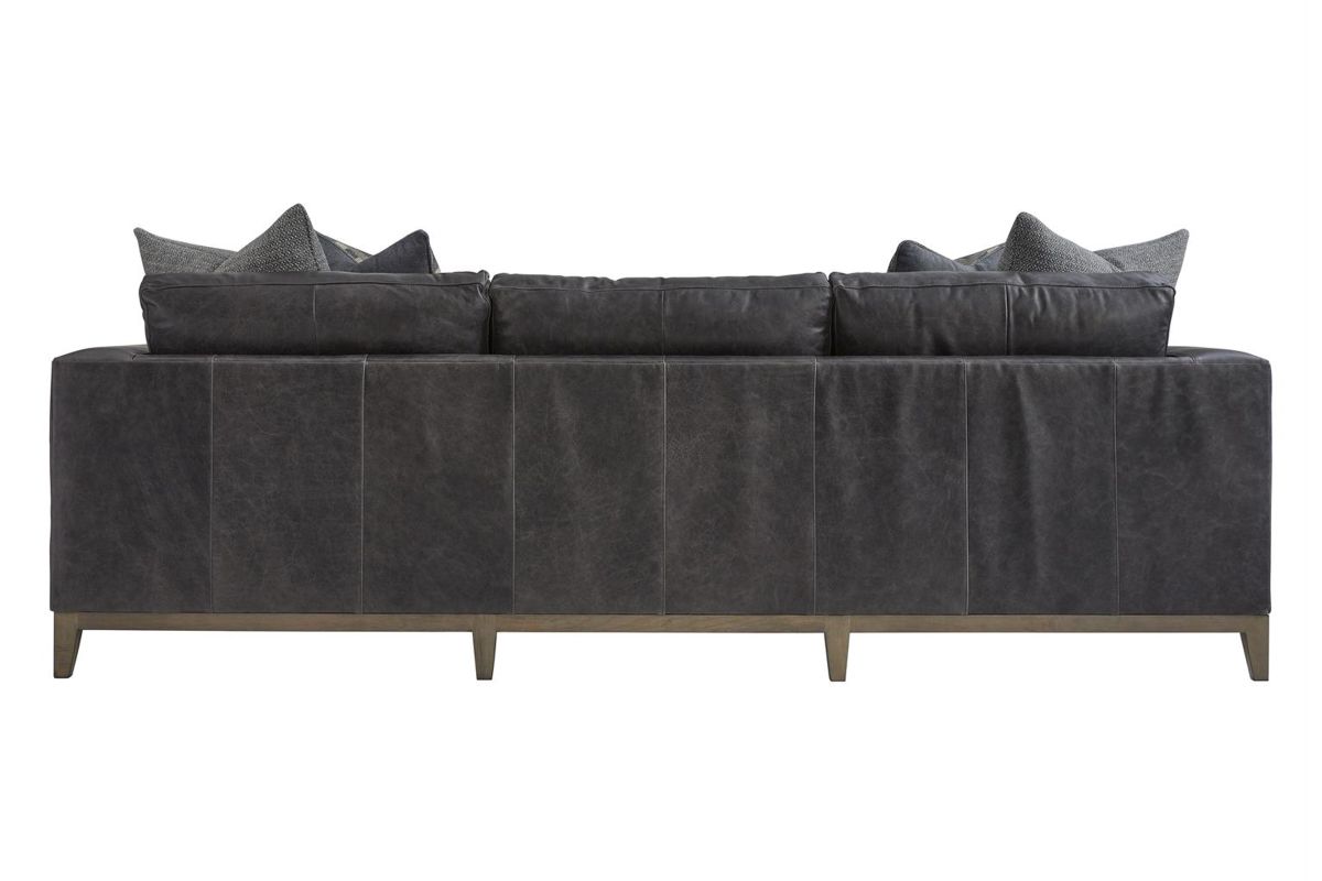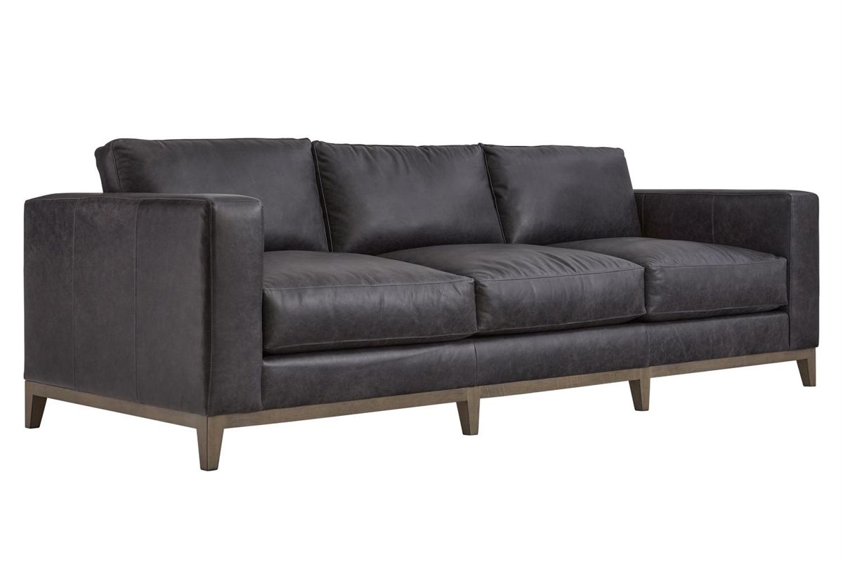 Freshly updated styling the Hugo leather sofa is a great addition to your family room. Upholstered in a rich contemporary charcoal gray leather and includes 4 plush blend down toss pillows. Luxurious spring-down seating provides long-lasting comfort.