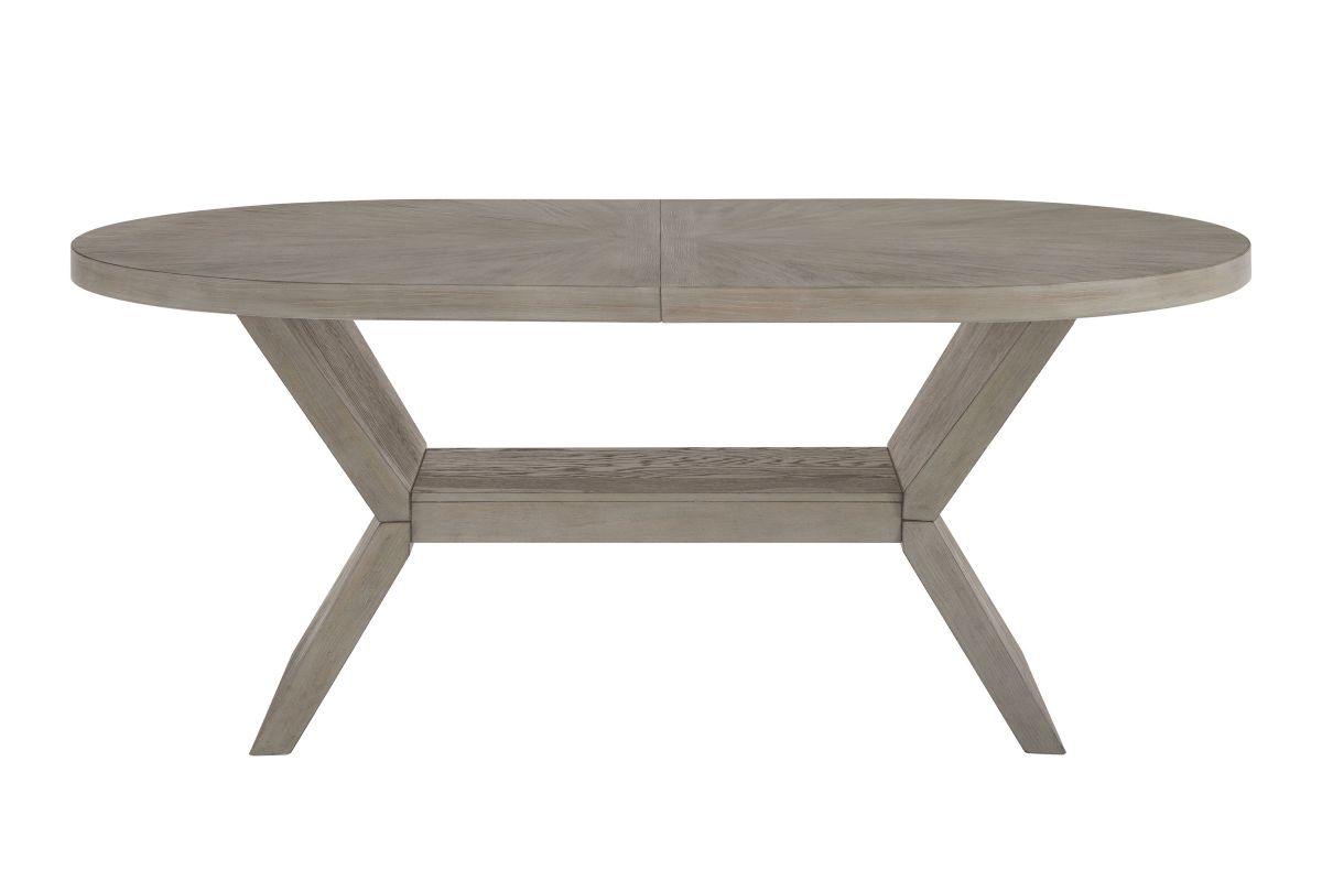 The Kennedy Dining has a Unique look and feel with its weathered grey oak veneer wood grain this would complement any room. This table features an 18" leaf that can extend the table to 92" long.