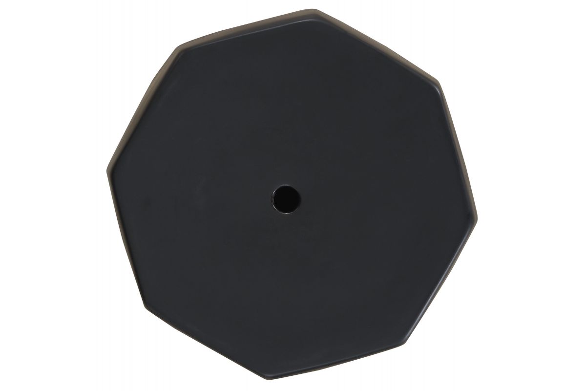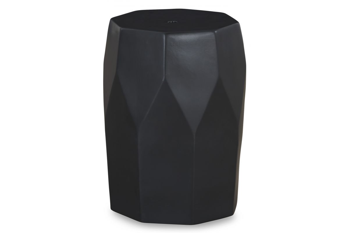 Bring fresh flair to an indoor or outdoor space with this contemporary accent stool. Next to a chair, it's the perfect place to set down a drink. And what a pretty perch for a draping plant. However you use it, you're sure to appreciate its bold faceted sides and edgy matte black finish.