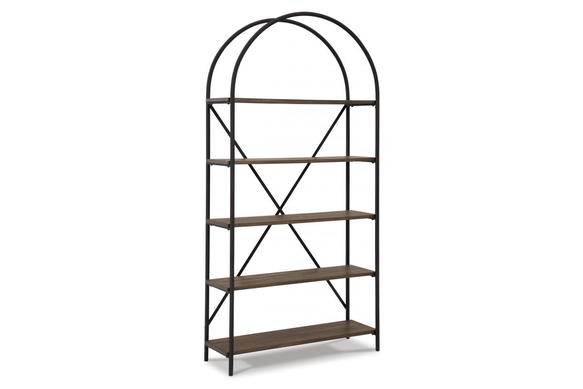 Put a personal touch into your space with the Galtbury on-trend bookcase, perfect for showing off framed photos, books and favorite objects. Defined by its distinctive mix of materials, this piece pairs an open metal frame in a bronze-tone finish with 5 fixed distressed wooden shelves for a look that’s right at home in an industrial, modern farmhouse or rustic setting.