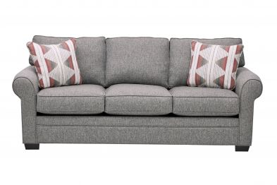 Comfortable, versatile and stylish, the Sadie sleeper is a fantastic choice for your living room. Enticing gray performance fabric provides a soft feel and practical durability. Double welted box bordered seat and back cushions, matching toss pillows, padded rolled arms and wood block legs offer superb support. Tucked away and easily pulled out for overnight guests, the sleeper boasts the exceptional comfort of a Sealy Royale queen size mattress with a quilted top. 100% Polypropylene. Special Order Options Available in Store