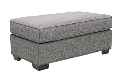 Whether you use the Sadie ottoman for your legs or an extra seat, you'll love the feel of the performance fabric and its gray tone. Exposed wood block legs support the piece. 100% Polypropylene. Special Order Options Available in Store