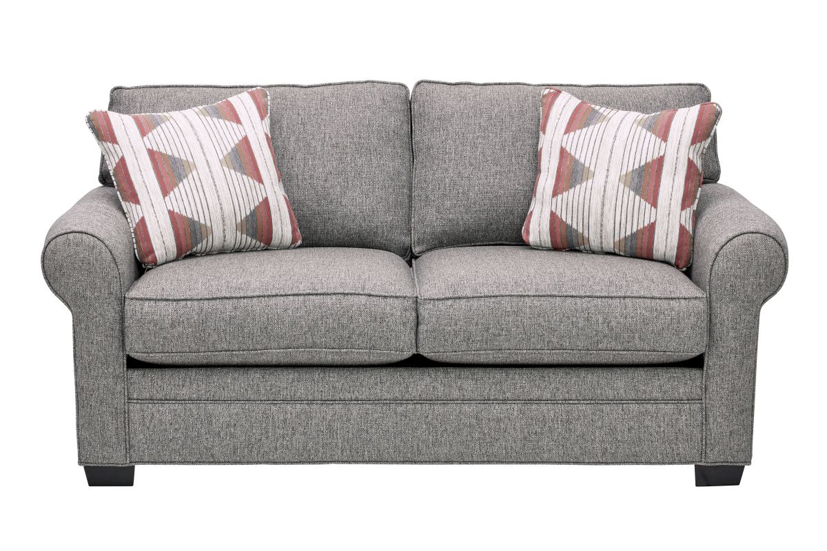 Comfortable, versatile and stylish, the Sadie sleeper is a fantastic choice for your living room. Enticing gray performance fabric provides a soft feel and practical durability. Double welted box bordered seat and back cushions, matching toss pillows, padded rolled arms and wood block legs offer superb support. Tucked away and easily pulled out for overnight guests, the sleeper boasts the exceptional comfort of a Sealy Royale full size mattress with a quilted top. 100% Polypropylene. Special Order Options Available in Store