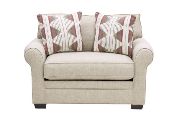 Update your living room with the enticing Sadie Collection. This collection features textured performance fabric in an on-trend beige color that is stain-resistant and easily cleanable. Additional fashionable features include loose reversible seat and back cushions with double welted boxed borders and comfortable padded rolled arms and wood block legs. Decorative matching toss pillows keep the look understated and sophisticated. 100% Polypropylene. Special Order Options Available in Store