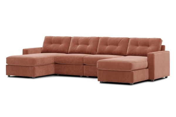 Uncover the limitless configurations of the ModularOne sectional, designed for both comfort and versatility. This customizable seating arrangement features individual pieces that can be arranged to fit any shape you need. Perfect for game days, movie nights, sleepovers, and everyday relaxation, your ideal seating setup is always within reach. Each piece is upholstered on all sides in soft chenille fabric featuring Repreve yarn made from recycled plastic bottles. The open seating includes a chaise, welted track arms, top-stitched seat cushions, and button-tufted back cushions for a sophisticated silhouette. Media consoles offer hidden storage, USB charging ports, wireless charging, Bluetooth speakers, and serve as side tables with sleek acrylic tops.