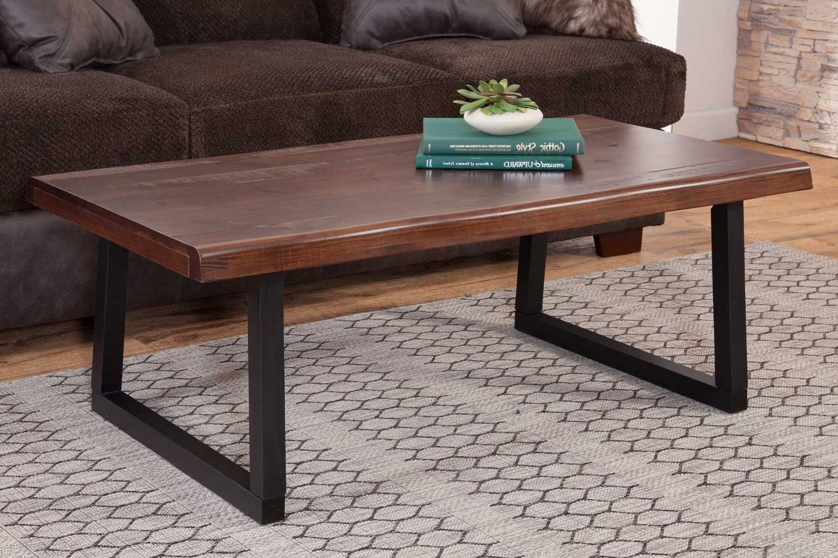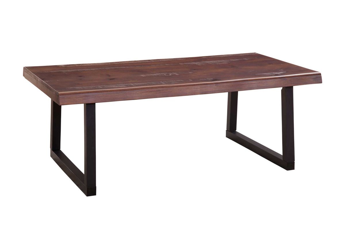 The Jennings Cocktail Table presents a rustic modern style in a two-tone finish that warms up any room. This Cocktail Table can be used alone or paired with the End Table and Bar to complete the room. The deep cherry colored finish contrasts beautifully with the ebony finished bas for a look that is truly transitional contemporary. A rustic live edge gives the table visual interest and shows off the beauty of the solid pine tops.