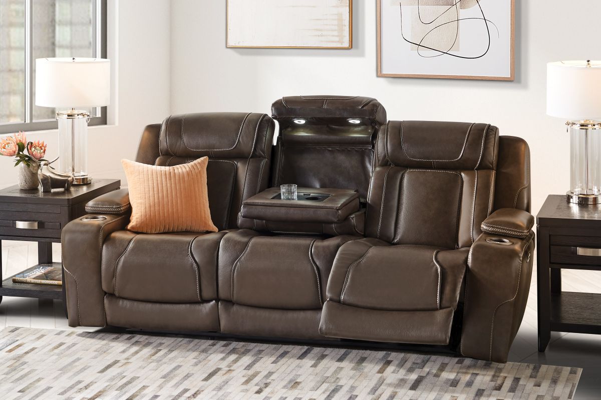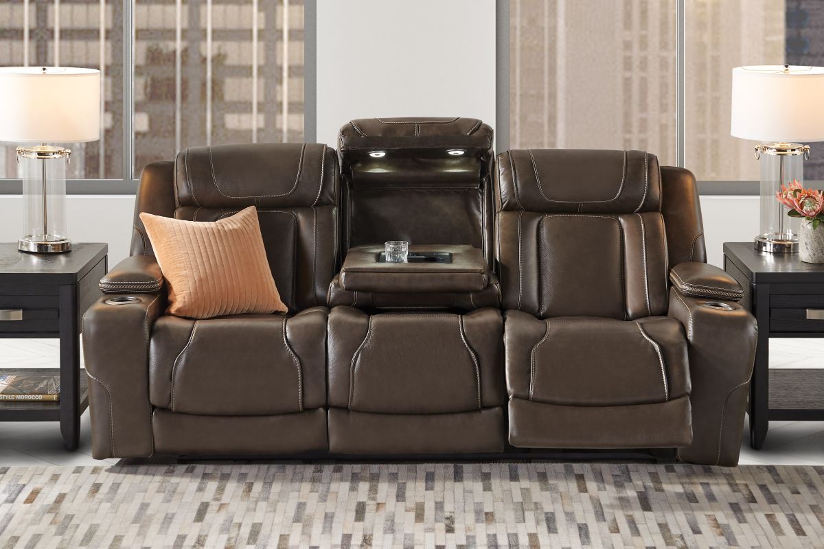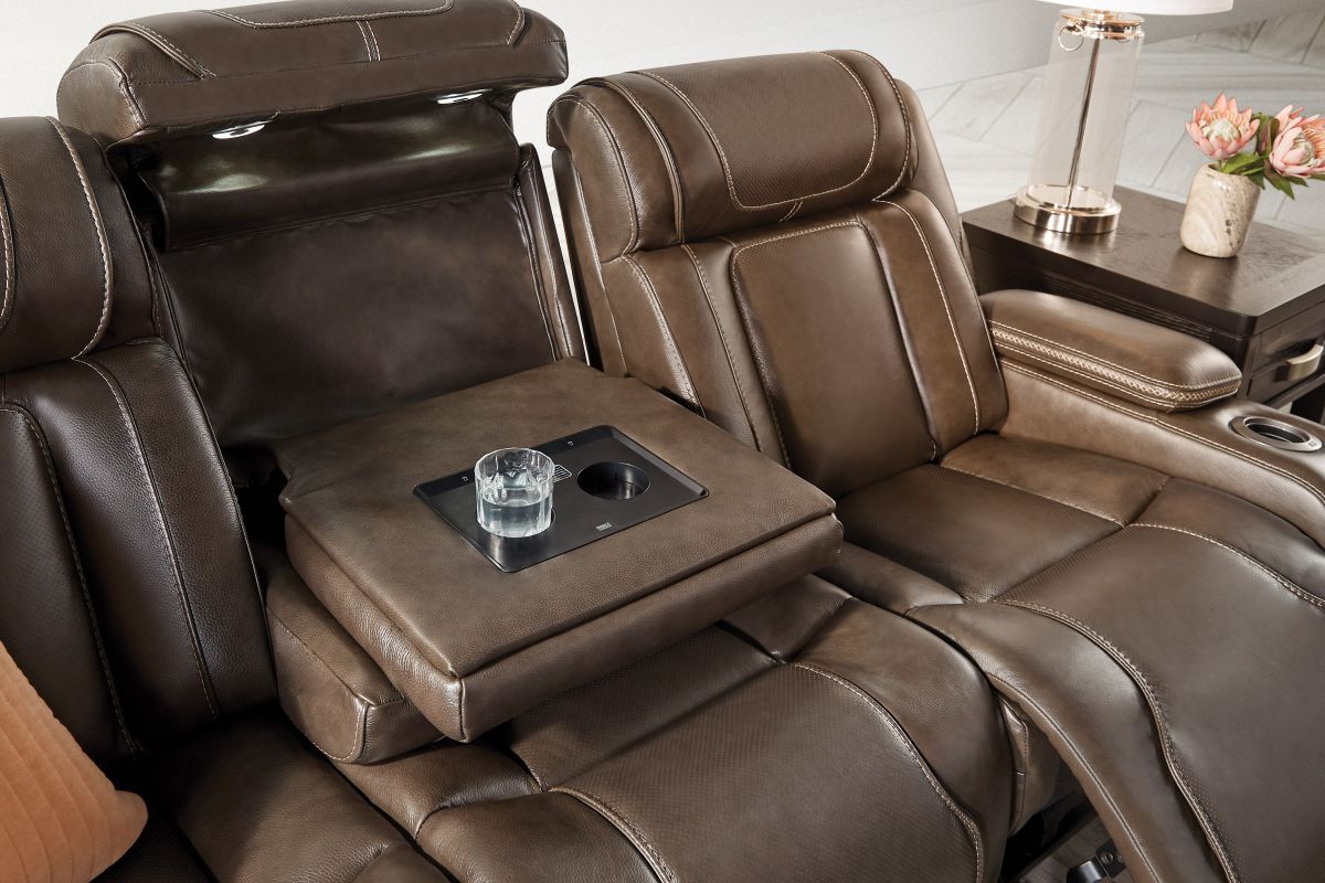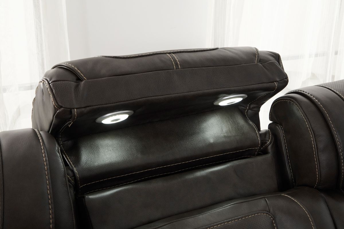 Wind down after a long day with the Reed Leather Power Reclining Collection that offers customizable head and leg rest positions at the touch of a button. The power drop-down table features wireless charging, cupholders and an LED reading light. Additional hidden storage can be found in the armrests along with LED cupholders. The storage console also features wireless charging, USB, and USB-C ports. True Zero Gravity reclining capabilities provides a floating sensation while reducing stress on the back. Enjoy the luxury of style and convenience with the Reed collection.