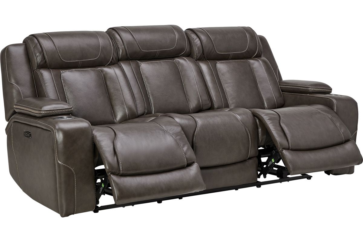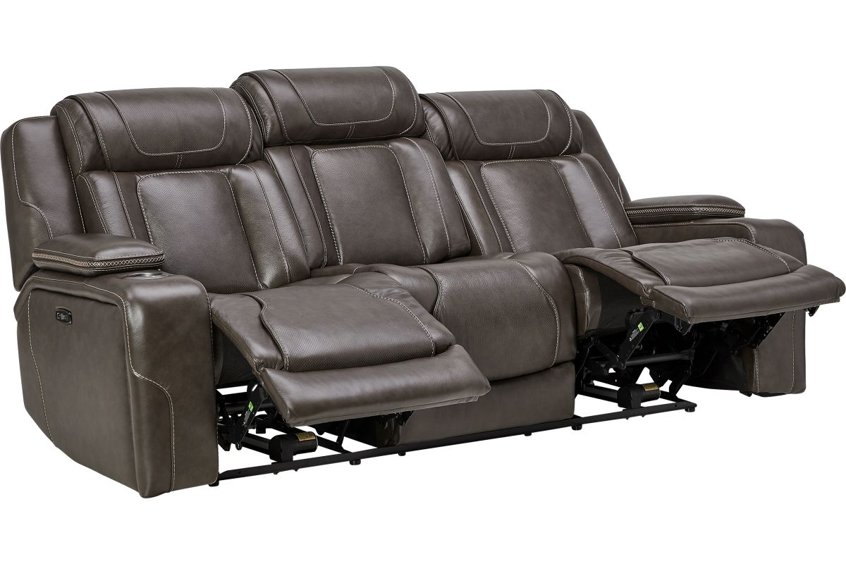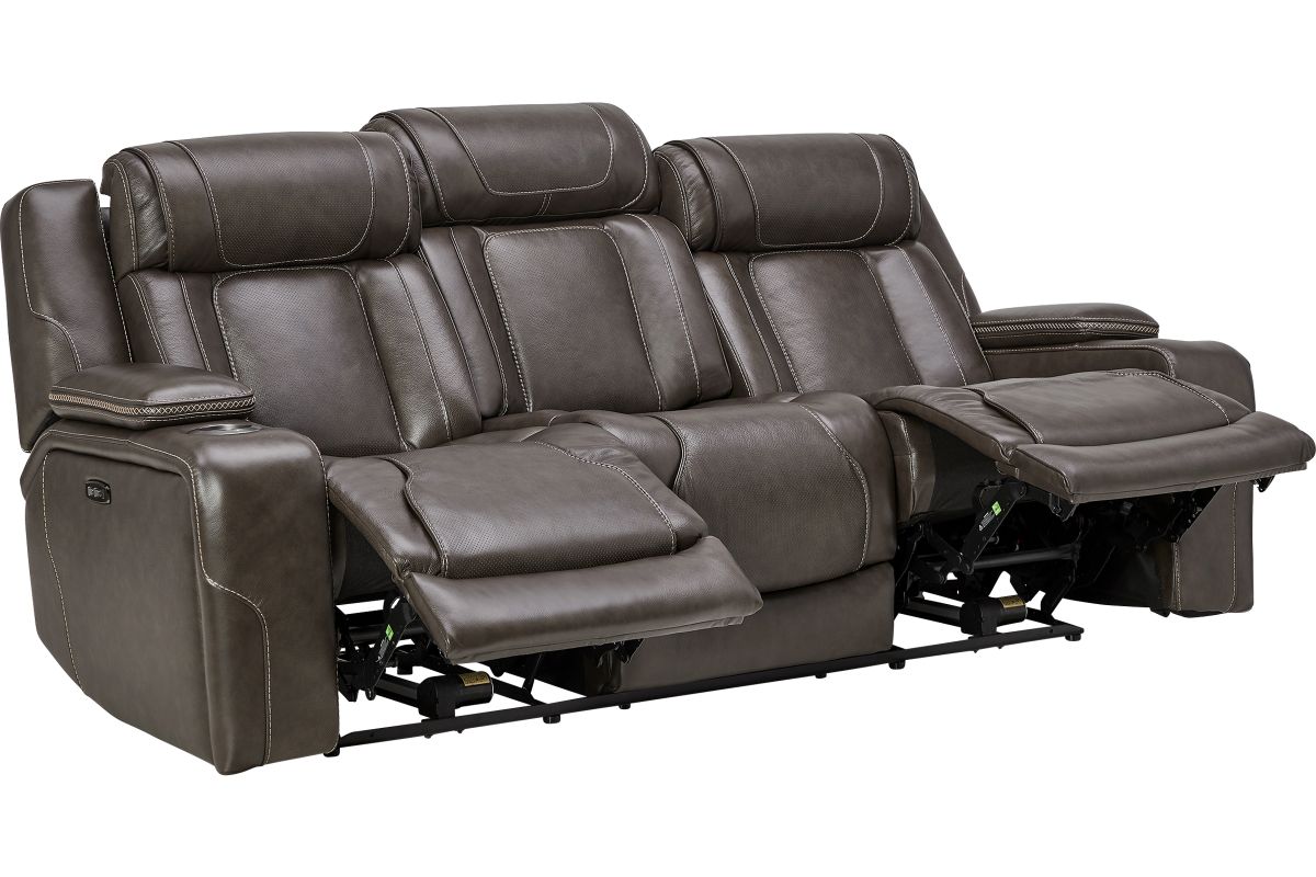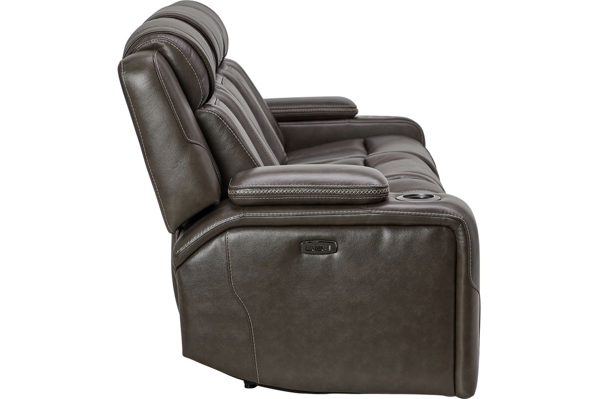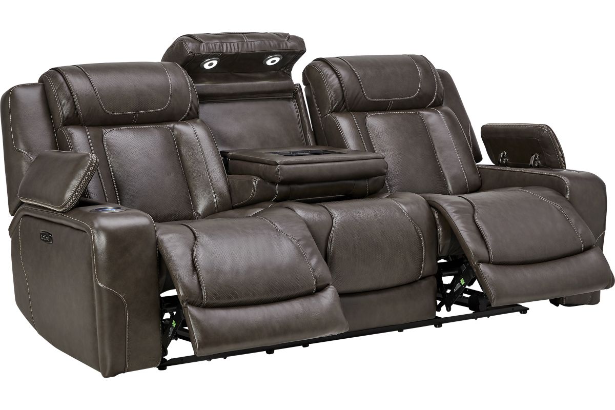 Wind down after a long day with the Reed Leather Power Reclining Sofa that offers customizable head and leg rest positions at the touch of a button. The power drop-down table features wireless charging, cupholders and an LED reading light. Additional hidden storage can be found in the armrests along with LED cupholders.True Zero Gravity reclining capabilities provides a floating sensation while reducing stress on the back. Enjoy the luxury of style and convenience with the Reed collection.
