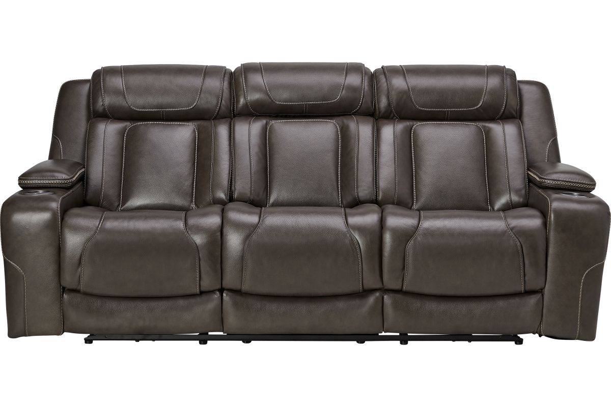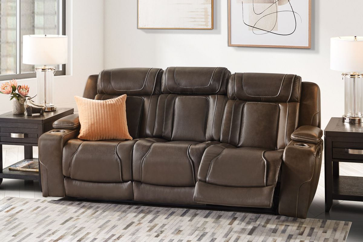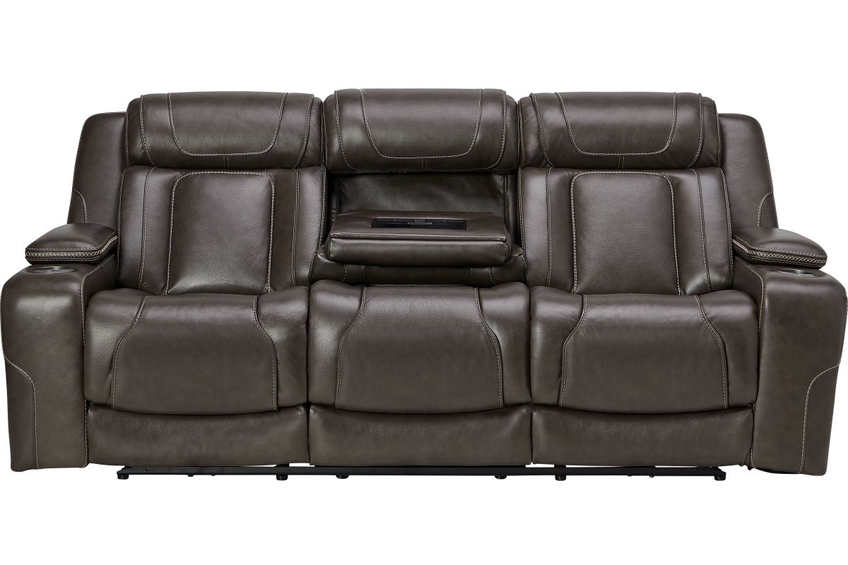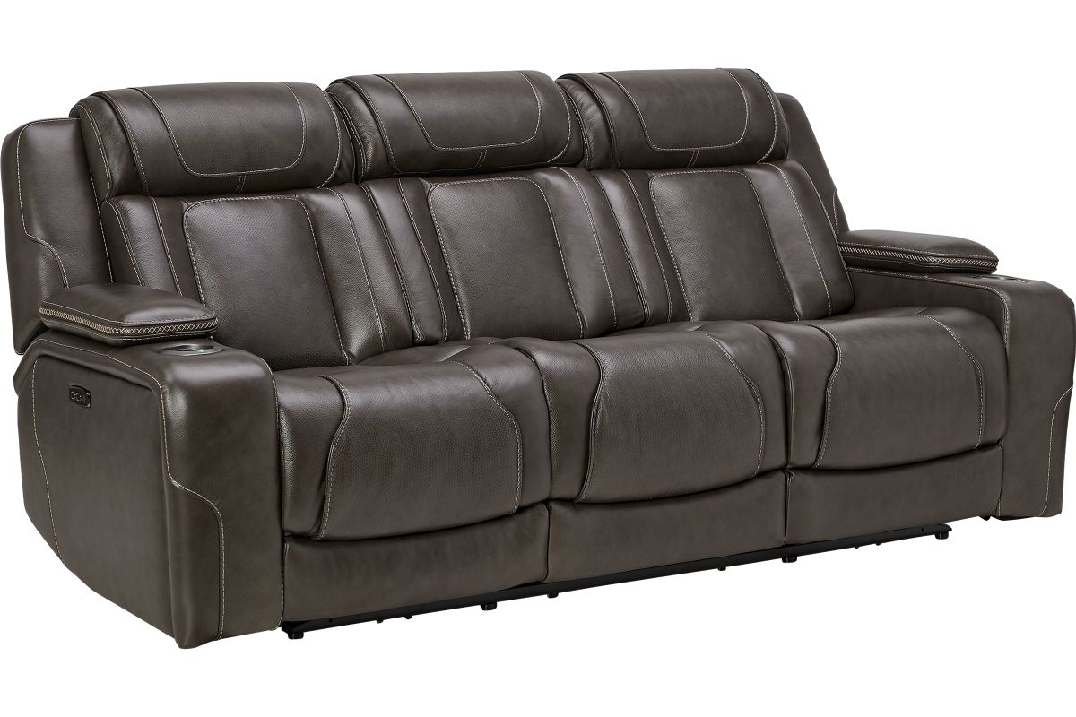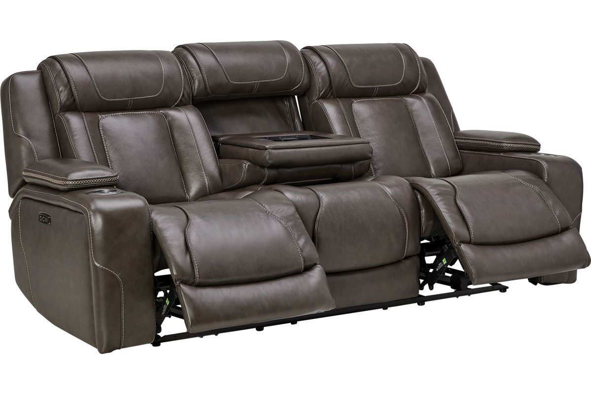 Wind down after a long day with the Reed Leather Power Reclining Sofa that offers customizable head and leg rest positions at the touch of a button. The power drop-down table features wireless charging, cupholders and an LED reading light. Additional hidden storage can be found in the armrests along with LED cupholders.True Zero Gravity reclining capabilities provides a floating sensation while reducing stress on the back. Enjoy the luxury of style and convenience with the Reed collection.