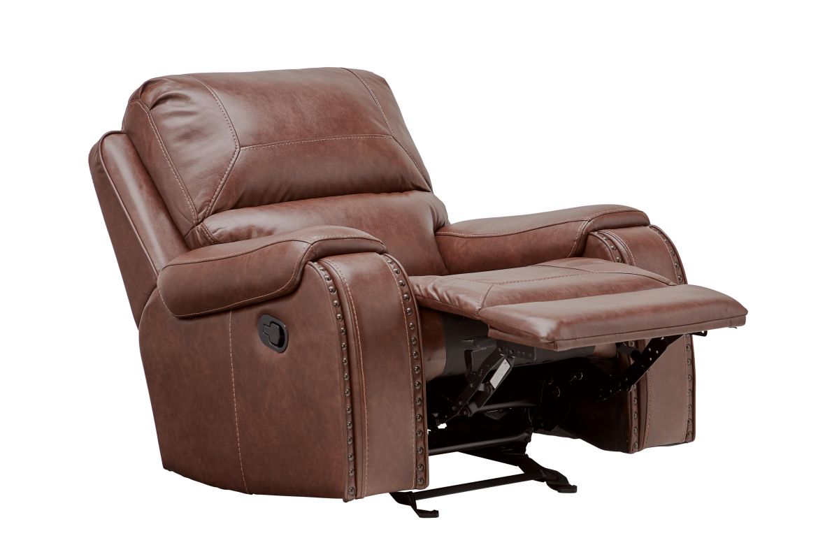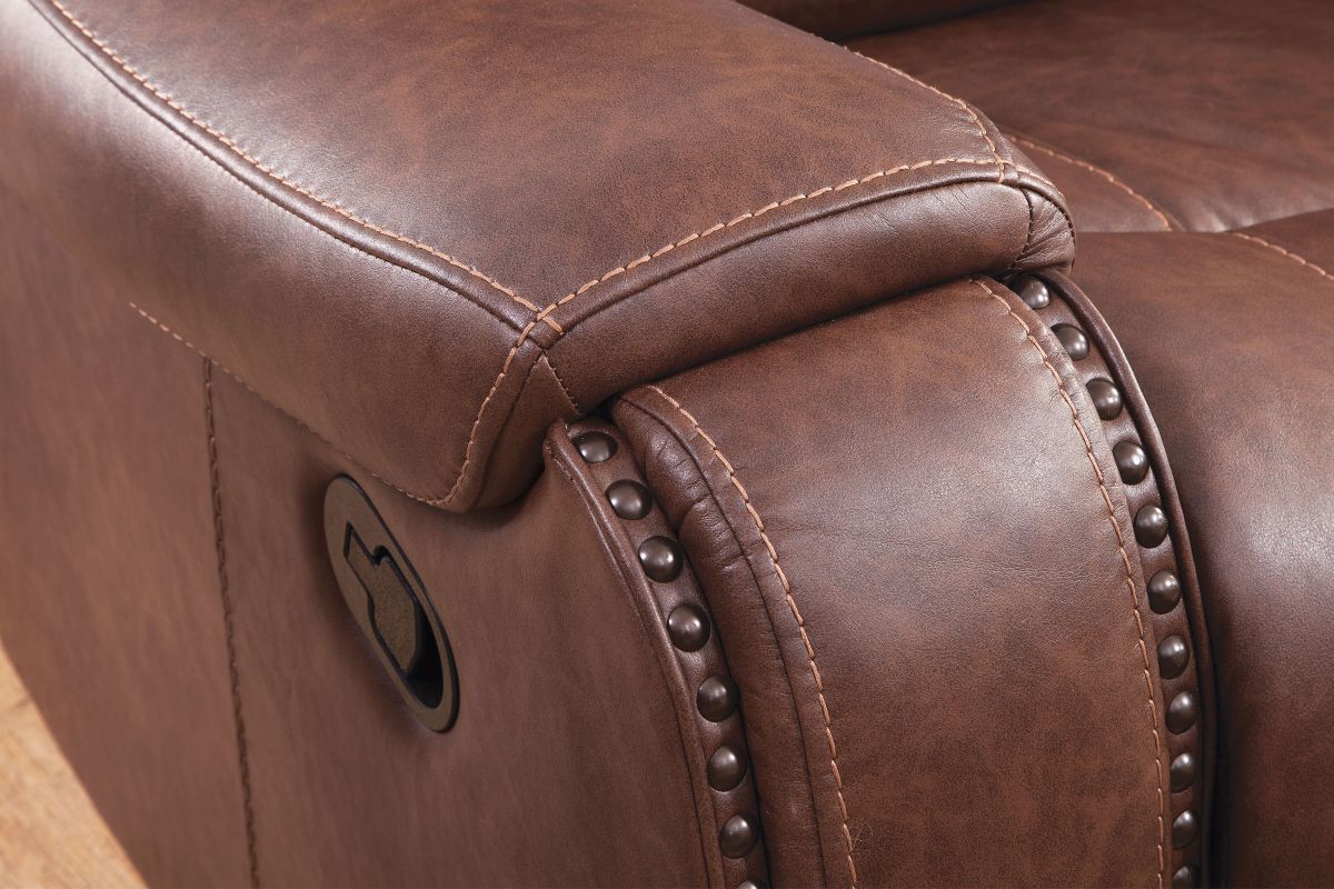 Anchor your living space with the simply designed Atwood Manual Reclining Collection. Designed with comfort in mind, this motion collection's clean lined silhouette will keep your space feeling contemporary. Tailored detailing on the cushions and a stylish nail head trim around the arms add a high-quality look and feel. The saddle arms and padded footrests provide superior comfort. Let the Atwood Manual Reclining Collection be your favorite space in your home.