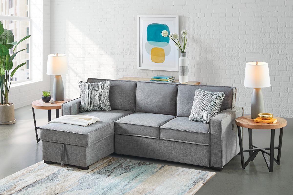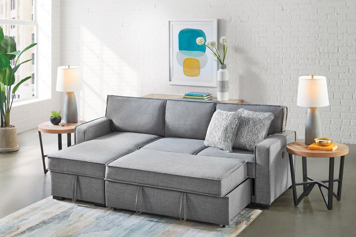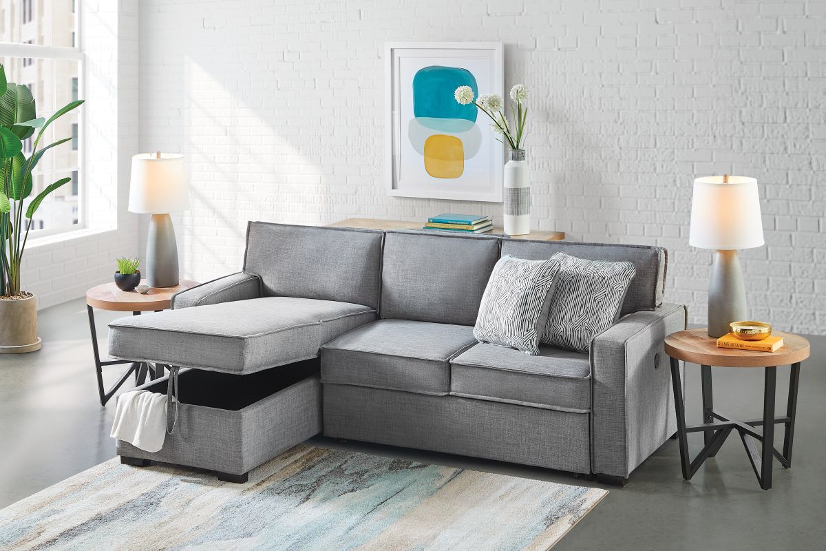 Style meets function in this modern 2-piece sleeper sectional. Designed in a space-saving L-shape, this pull-out sofa transforms effortlessly into a cozy bed for overnight guests. Upholstered in a soft, linen-like fabric, it brings a clean, contemporary feel to your living room or guest space. The built-in storage chaise lifts to reveal room for extra blankets, pillows of seasonal bedding—keeping clutter out of sight. Two hidden USB ports offer easy charging for your devices, making this sectional as smart as it is stylish.
