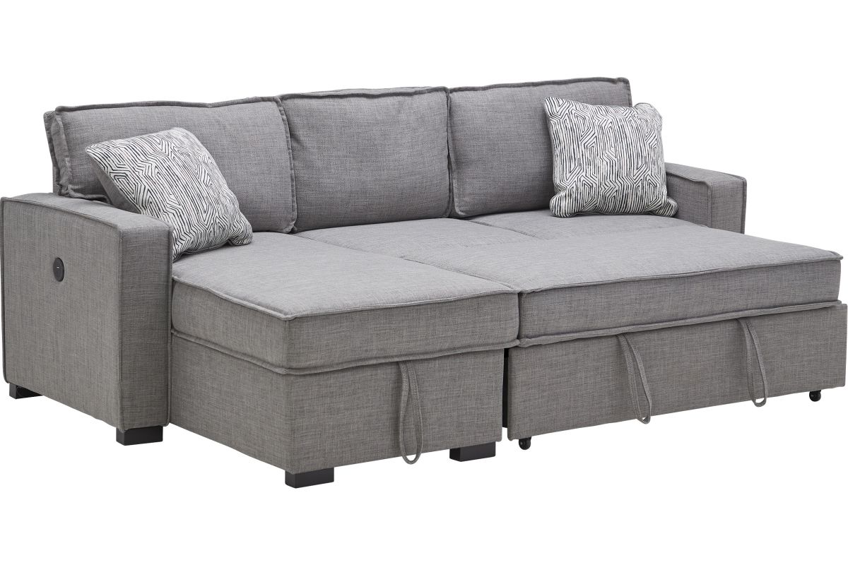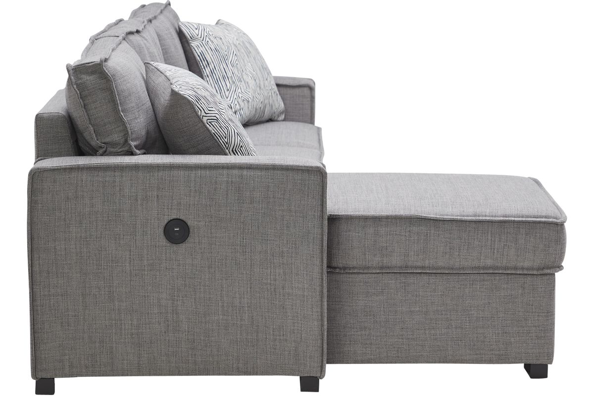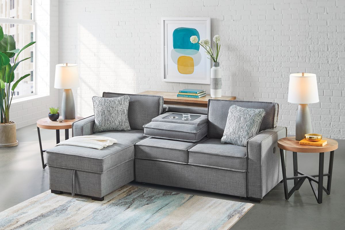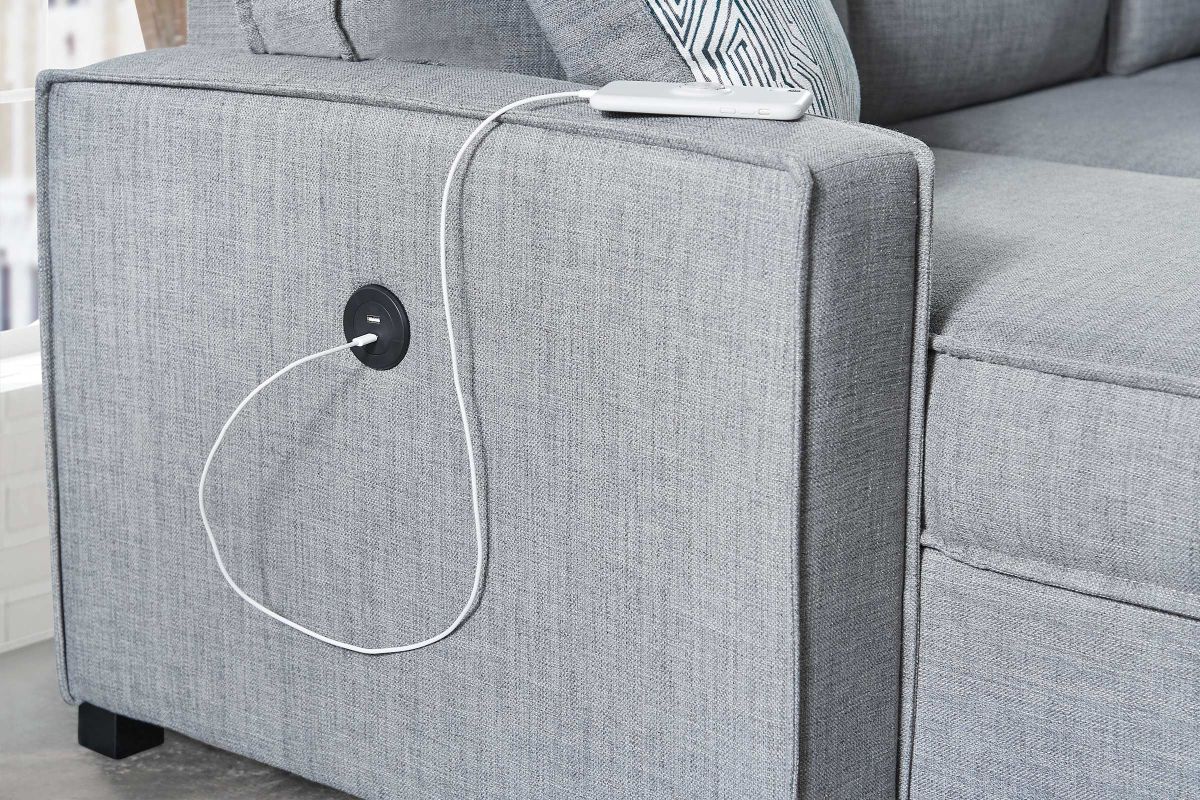 Style meets function in this modern 2-piece sleeper sectional. Designed in a space-saving L-shape, this pull-out sofa transforms effortlessly into a cozy bed for overnight guests. Upholstered in a soft, linen-like fabric, it brings a clean, contemporary feel to your living room or guest space. The built-in storage chaise lifts to reveal room for extra blankets, pillows of seasonal bedding—keeping clutter out of sight. Two hidden USB ports offer easy charging for your devices, making this sectional as smart as it is stylish.