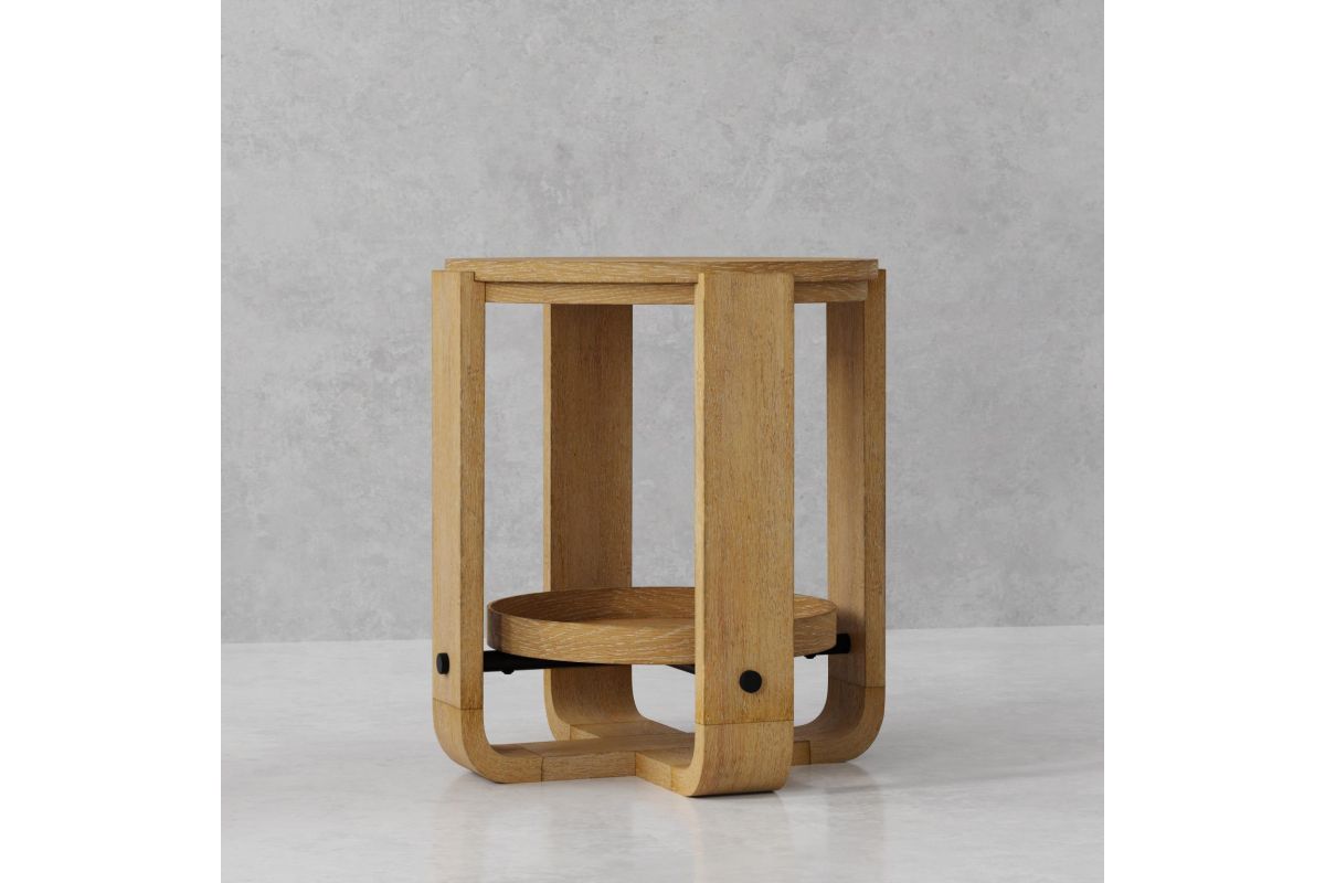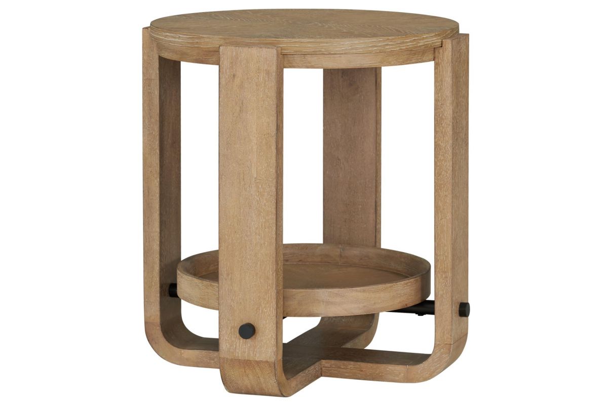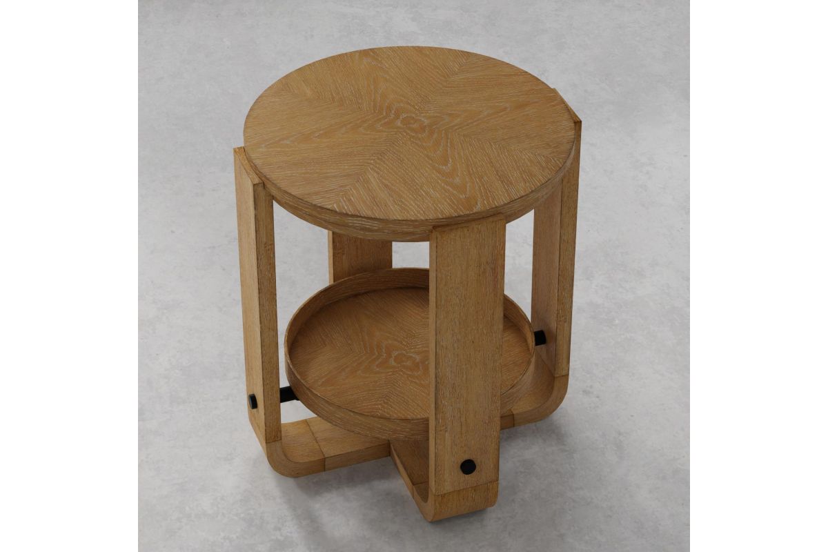 Created with stunning oak veneers over hardwood solids in a light, natural finish that feels modern yet timeless. Soft, slightly weathered finish with natural patina accentuates the organic beauty of natural oak woodgrains. Features an upscale palette of materials that includes elements of naturaloak, stone, warm bronze hardware, and textured fabric.