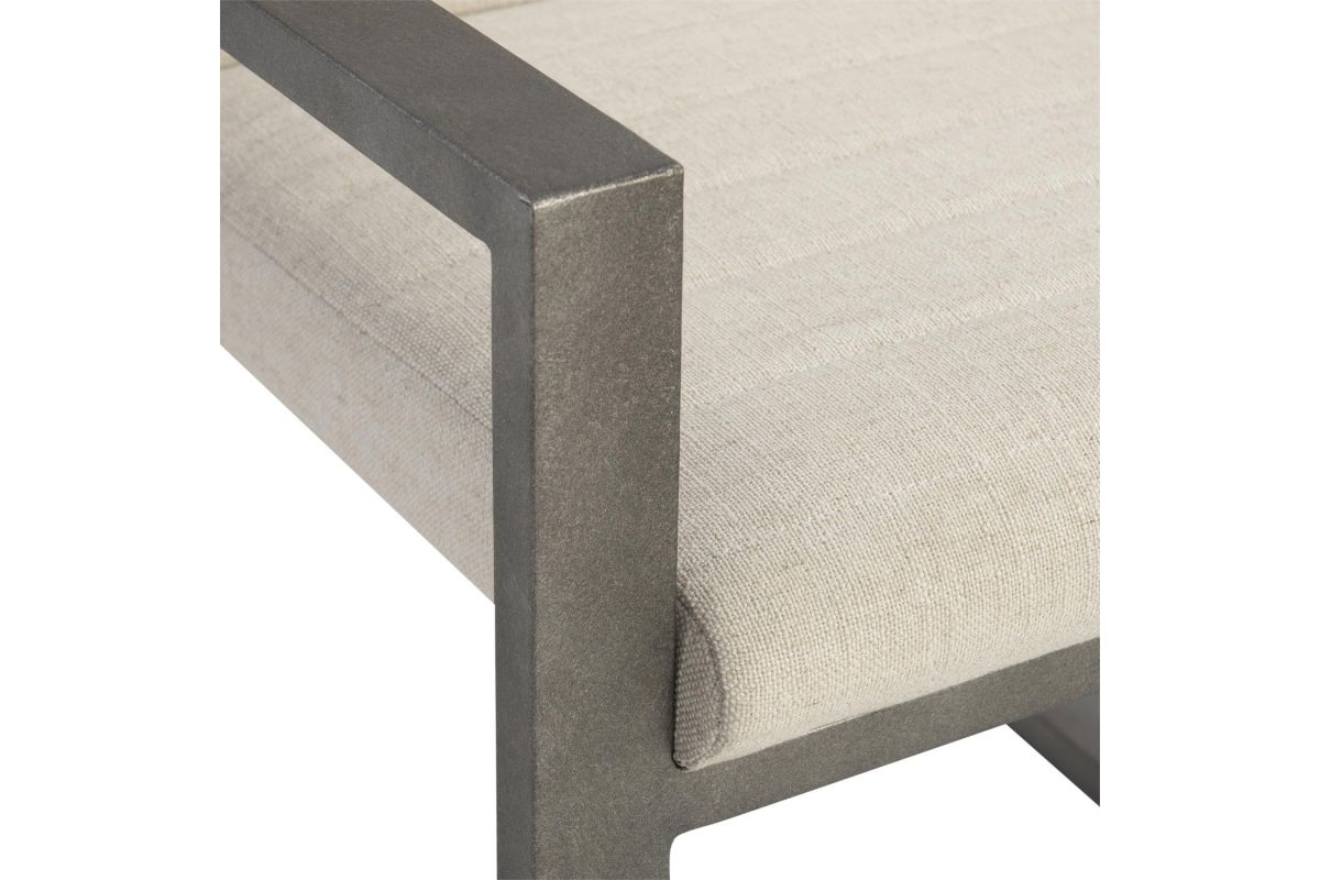 Clean lines and simple modern shapes combine to create an urban design in the Tribeca arm chair. A horizontal channeled seat appears to float between two angular frames in textured aluminum. The result is a chic and casual look for a contemporary style.