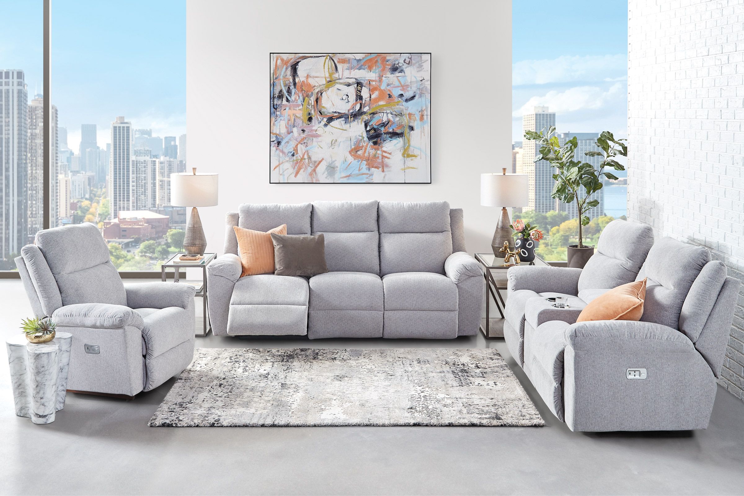 The Joel collection by La-Z-Boy is designed to be a family favorite and the go-to spot for everyday relaxation. With a casual, inviting style, it features flared arms topped with soft, pillowy armrests and plush blown fiber backs that offer exceptional comfort. Overstuffed cushioning and reclining chaise seats on either end make it perfect for lounging, reading, or watching the big game. Convenient latch releases on the outside arms let you easily adjust the legrest for personalized comfort, while single-needle topstitching adds a touch of subtle detail. Built with double-picked blown fiber fill, this sofa is crafted for lasting loft, shape retention, and cozy support that you'll enjoy for years to come.