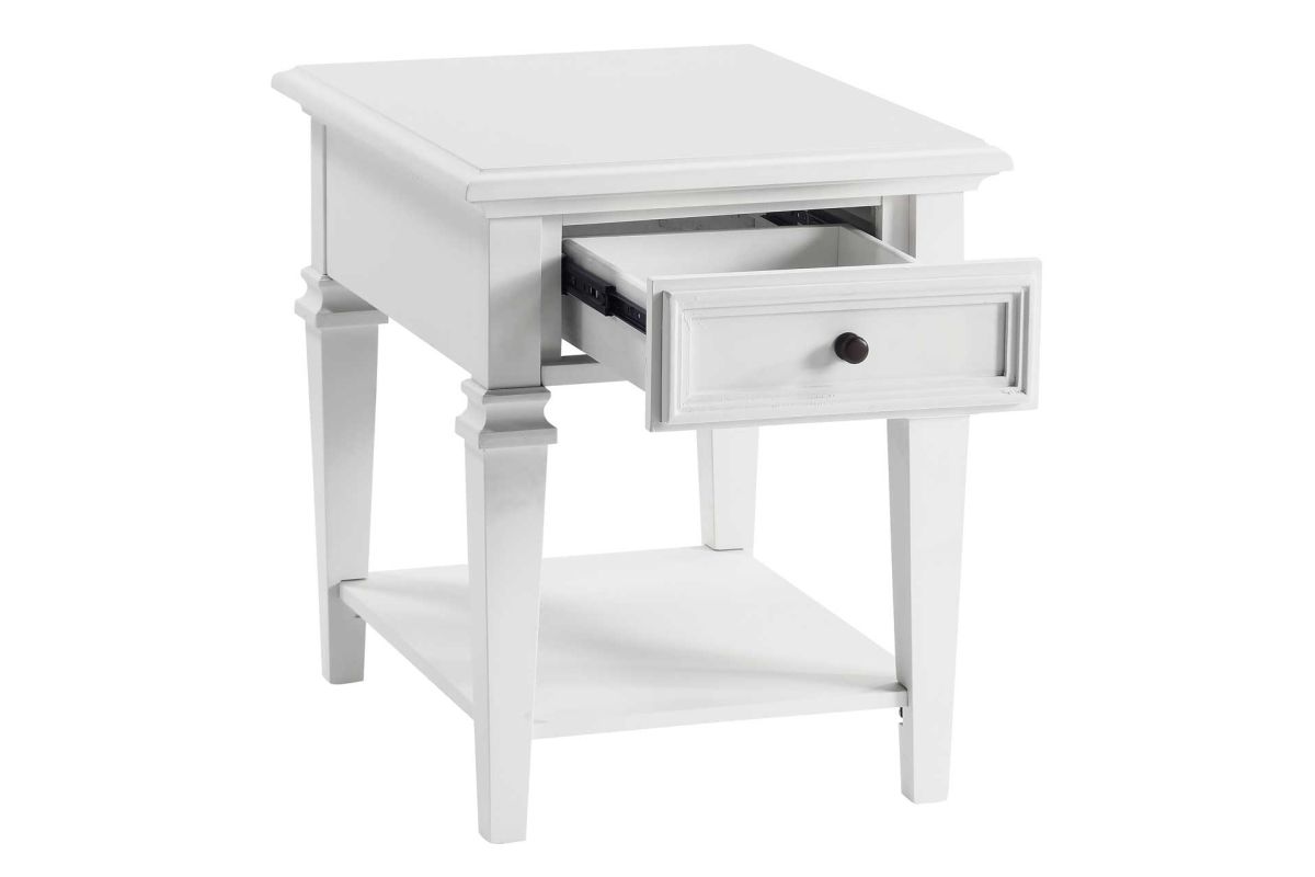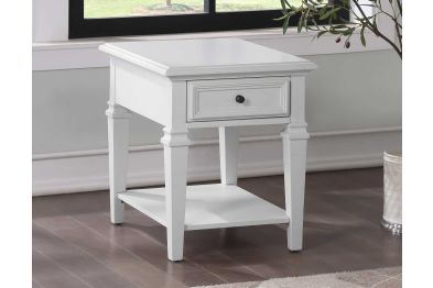 Modern farmhouse design in a compact design that fits comfortably beside a chair or as a companion piece to a Sofa and Loveseat. This Charlestown table combines contemporary and cottage elements with a soft ogee edge plus angular leg treatment to produce a transitional table that will fit almost anywhere. A clean, crisp white finish adds a fresh, neutral look to this versatile table.