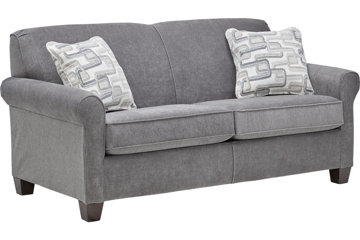 Jillian can only be described one way- sleek, simple, and super comfortable. Its clean silhouette is achieved with a tight back, a P-shaped roll arm, and an exposed wood leg. This fashion-forward silhouette can go from understated and sophisticated to fabulous and fun with the change of a fabric. Unveil the hidden potential with its easy-to-use sleeper mechanism, which counterbalances its weight to make cleaning underneath a breeze. Whether accommodating unexpected guests or creating a space-saving solution for a smaller living area, the Jillian Sleeper Sofa is a game-changer.