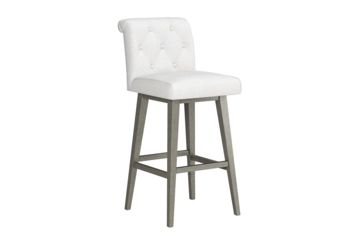 Introducing our Adjustable Swivel Stool, designed to elevate both style and comfort in your space. Featuring a Tufted White upholstered seat and a with a Grey base that has an adjustable height and swivel function, this stool is the perfect addition to your kitchen island, bar, or counter. The Tufted seat possesses a luxurious and classic appeal with deep button tufting that adds an elegant touch.