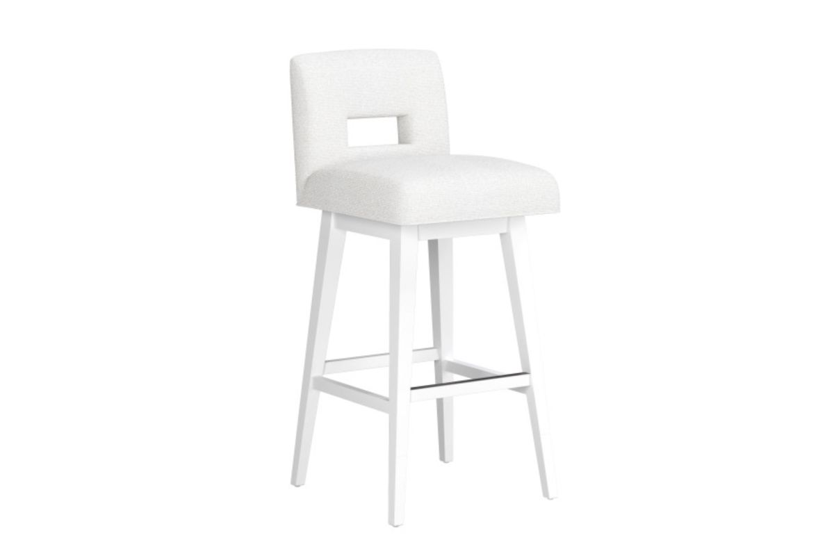 Introducing our Adjustable Swivel Stool, designed to elevate both style and comfort in your space. Featuring a Keyback White upholstered seat and a with a White base that has an adjustable height and swivel function, this stool is the perfect addition to your kitchen island, bar, or counter.